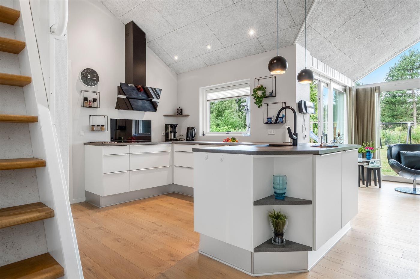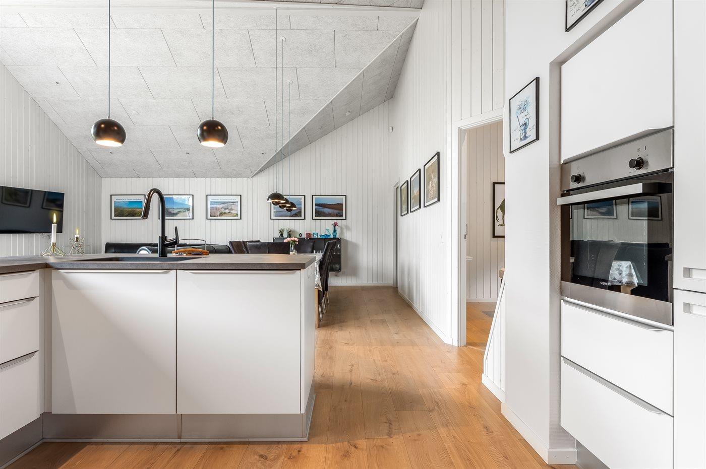 Køkkenet er udstyret med 1 køleskab. Der er 4 induktionskogeplader, varmluftovn, mikrobølgeovn samt opvaskemaskine.