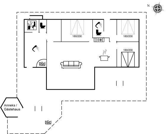 Husets indretning gør det velegnet til såvel en ferie med familien eller til flere par, som ønsker at tilbringe en fælles ferie i dejlige omgivelser.