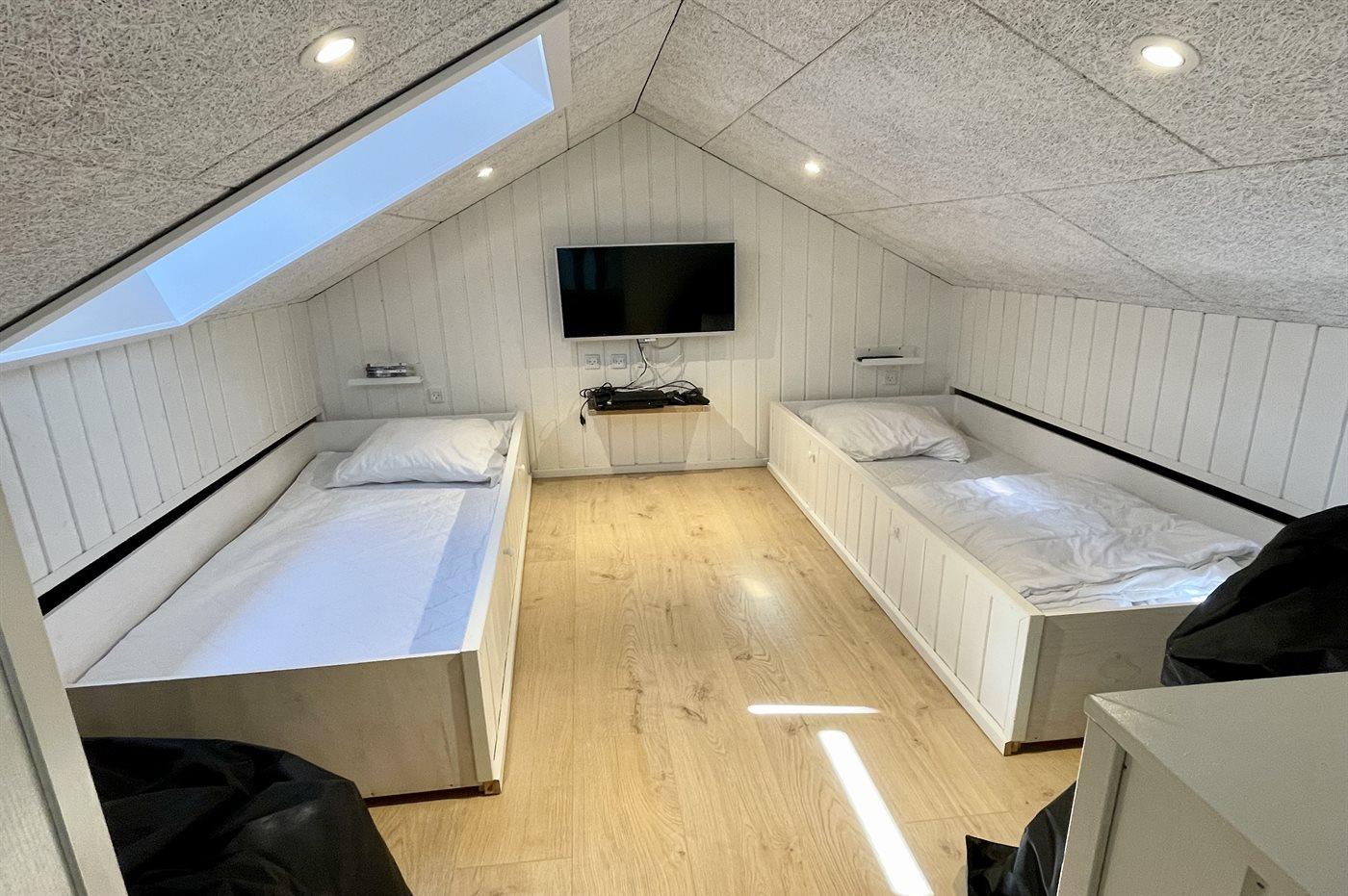 Der er i alt 3 soveværelser. Sovepladserne fordeler sig på: 6 sovepladser i dobbeltsenge. 2 sovepladser på madrasser. 2 af disse sovepladser befinder sig på husets hems. Derudover er der 1 stk. barneseng.