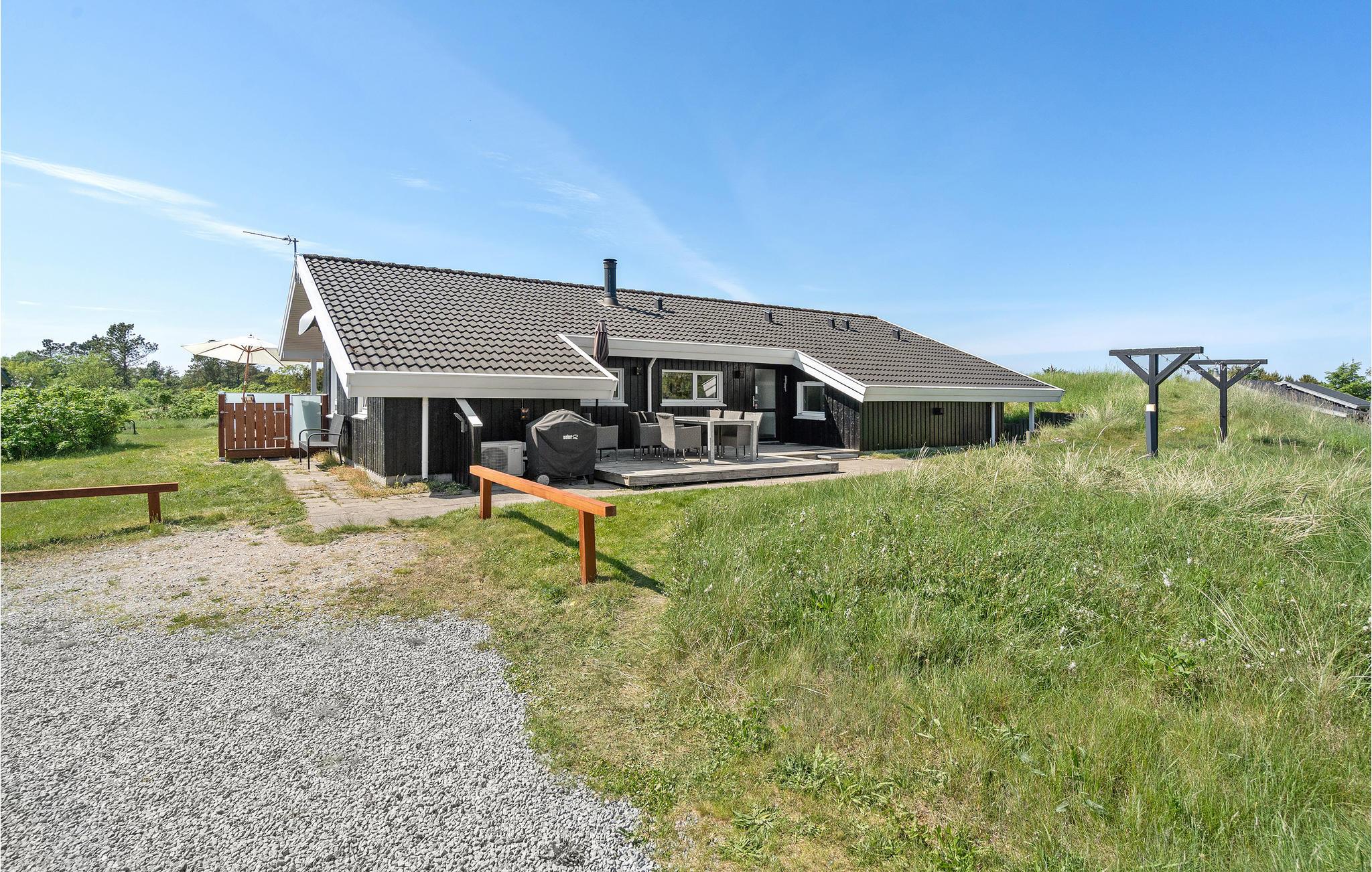 På en stor kuperet klitgrund nær den skønne Tversted strand ligger dette godt indrettede og veludstyrede sommerhus. I huset er der rigelig plads til flere familier. Udover soveværelserne er der en hems med to sovepladser. Der er gulvvarme både på badeværelserne og i poolafdelingen. I poolafdelingen kan I hoppe i den forfriskende swimmingpool, nyde varme og massage i spabadet, og børnene kan boltre sig i børnepoolen og på vandrutsjebanen. Den lyse stue er indrettet med brændeovn og gode møbler. Huset er omgivet af store terrasser, hvor solen kan nydes fra tidlig morgen til sen aften. På den ene af terrasserne findes et stort seks-personers spabad, der er til jeres rådighed året rundt. Til børnene er der en flot legeplads på grunden.