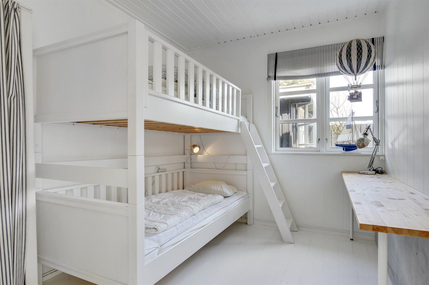 Der er i alt 4 soveværelser. Sovepladserne fordeler sig på: 4 sovepladser i dobbeltsenge. 2 sovepladser i køjeseng. 2 sovepladser i sovesofa (dobbelt). 4 af disse sovepladser befinder sig i et anneks fordelt på 2 værelser.