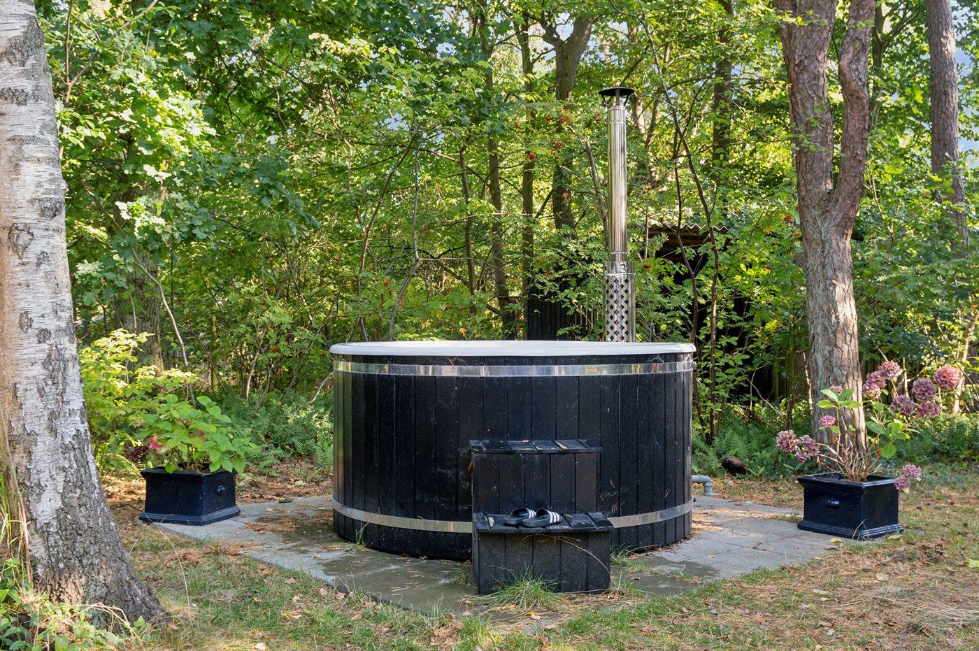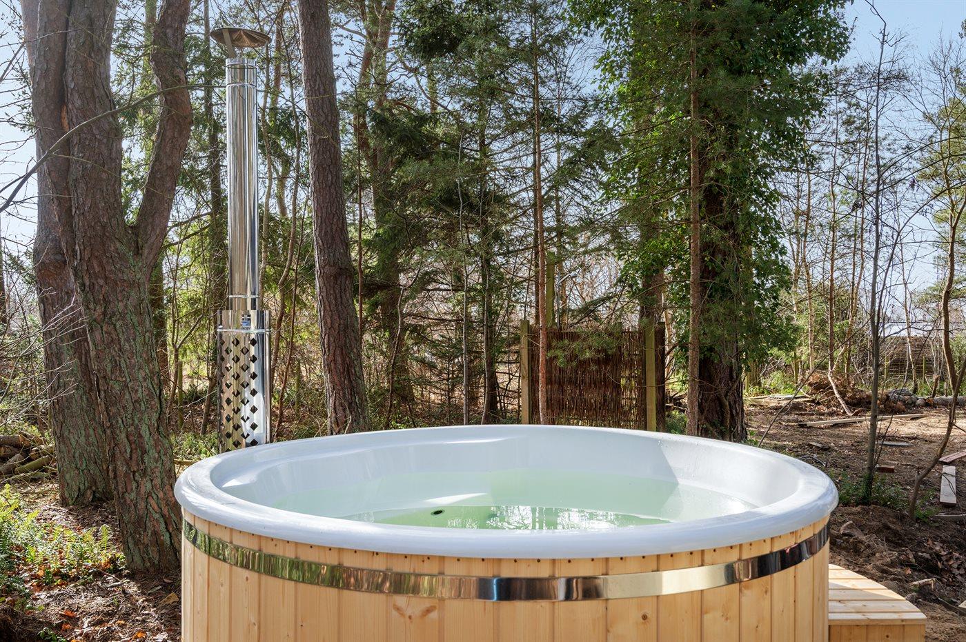 Der er mulighed for afslapning i det udendørs vildmarkskar til 4 personer.