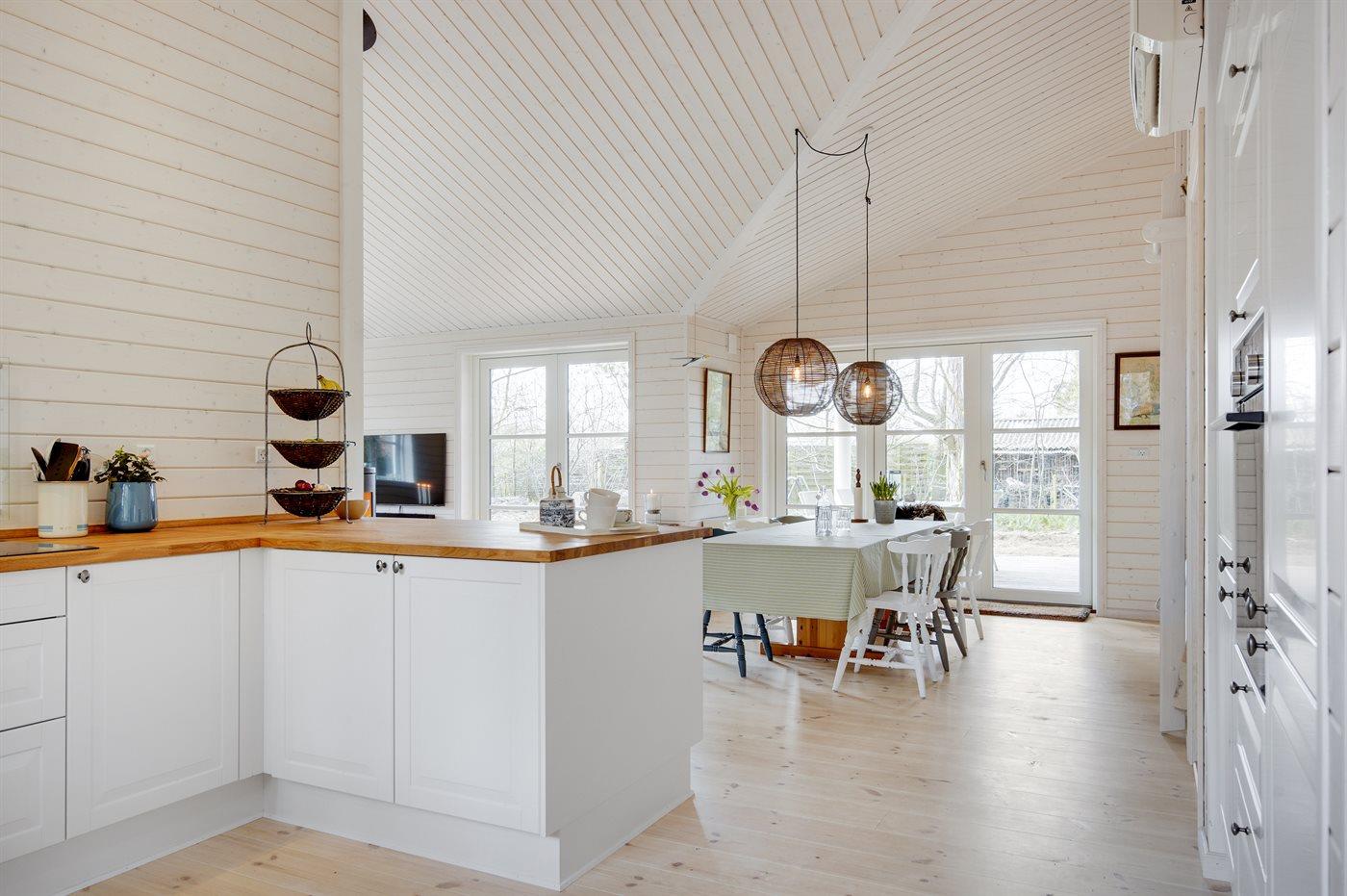 Køkkenet er udstyret med 1 køleskab. Der er 4 induktionskogeplader, varmluftovn samt opvaskemaskine.
