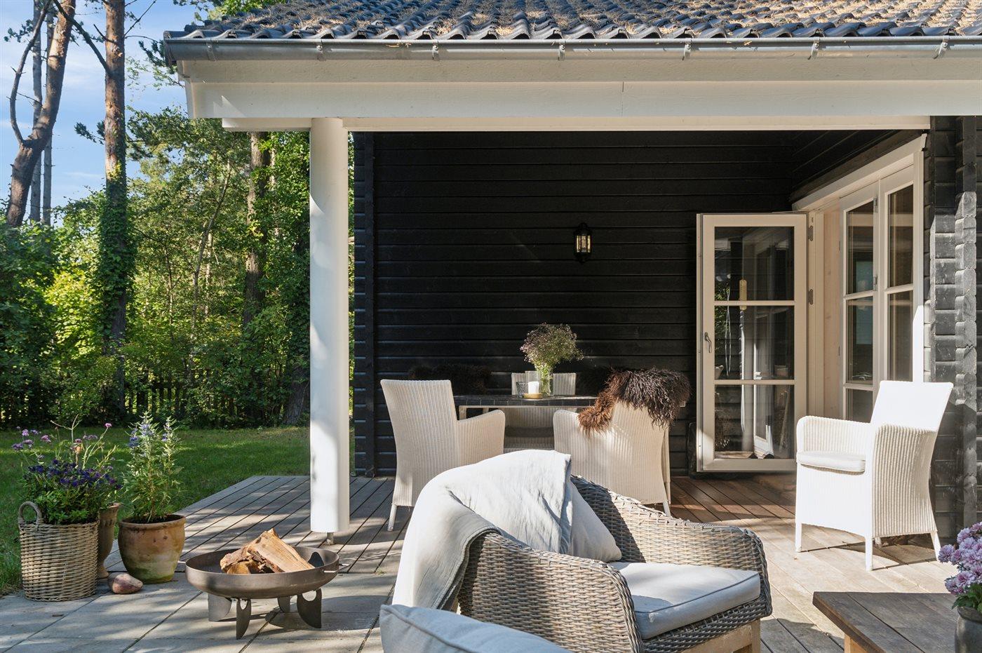 Sommerhusstemningen er helt i top i dette nybyggede bjælkehus, opført i kvalitetsmaterialer og med masser af luksus. Man henføres til sydlige himmelstrøg under de høje grantræer som omgiver huset. På den store træterrasse, hvoraf en del er overdækket, er der rig mulighed for at nye sommeren og de lune aftener. Der findes desuden et vildmarksbad til 4 personer, som kan benyttes året rundt og en udebruser. Husets midtpunkt er store køkken, som ligger i åben forbindelse til spiseplads og opholdsstuen, hvor alle kan samles og hygge sig. Herfra er det også udgang til terrassen. Værelserne er rummelige og regulære. Badeværelserne er udført med smukke fliser og der er naturligvis gulvvarme. Huset er beliggende i gåafstand til en god og børnevenlig strand med badebro. I køreafstand ligger den hyggelige fiskeriby Gilleleje med det oprindelige fiskerlejes charme og idyl. Her er rig mulighed for at købe eller spise frisk fisk på havnen og besøge byens cafeer, restauranter og butikker. Besøg også de øvrige byer på Nordkysten som for eksempel Hornbæk, Dronningmølle og Tisvildeleje eller gå en tur i skønne omgivelser i naturområdet Heatherhill.