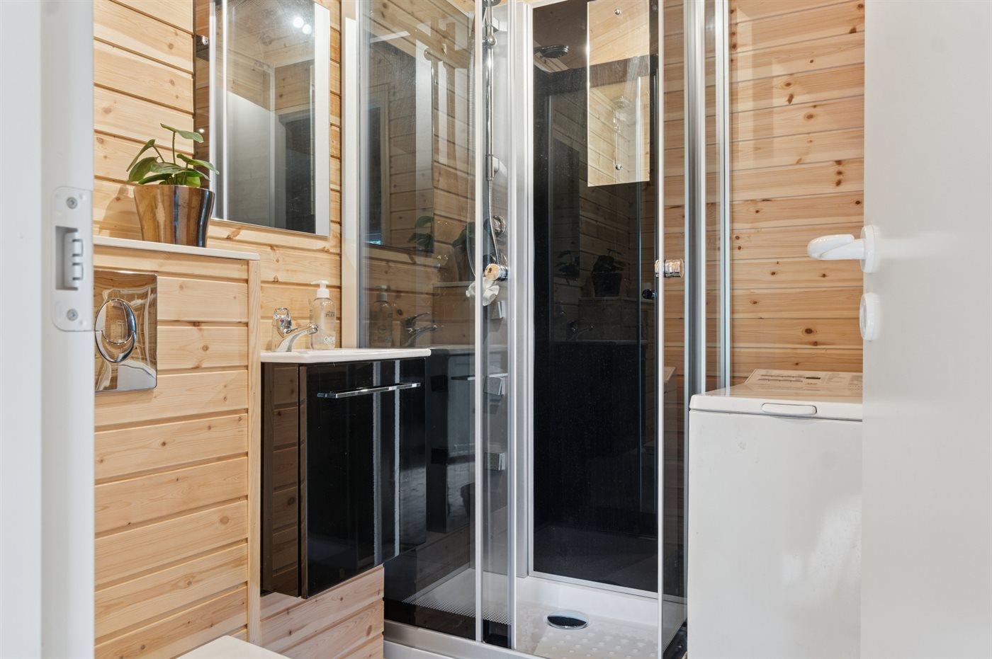 Der er 2 badeværelser med bruseniche og 2 toiletter. Der er gulvvarme på 1 badeværelse.