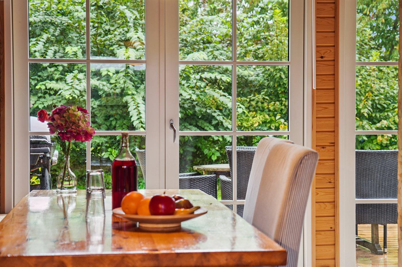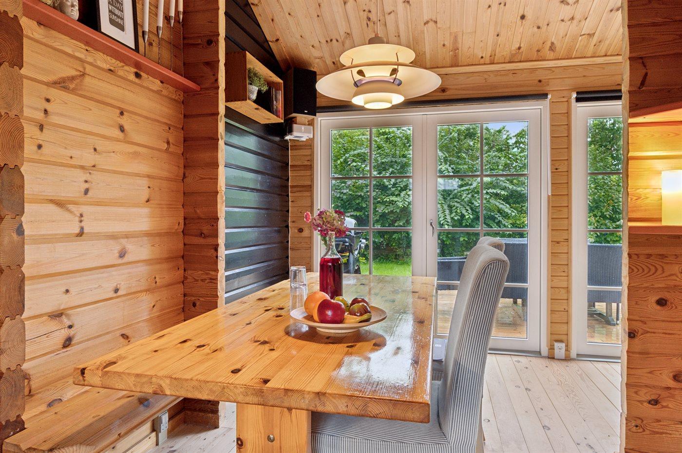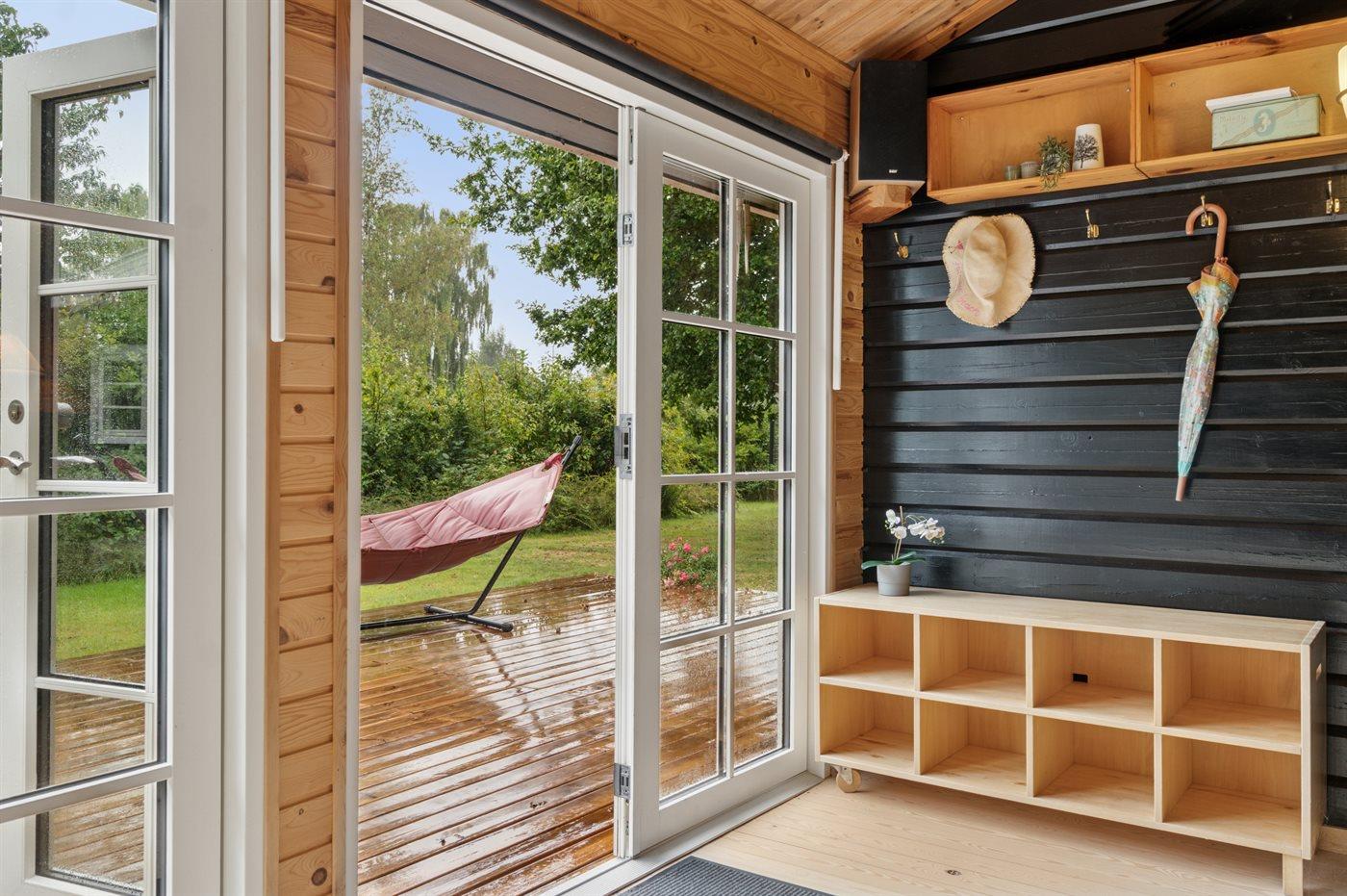 Til sommerhuset hører et nyt anneks (2025) med dobbeltseng, køjeseng og eget badeværelse.