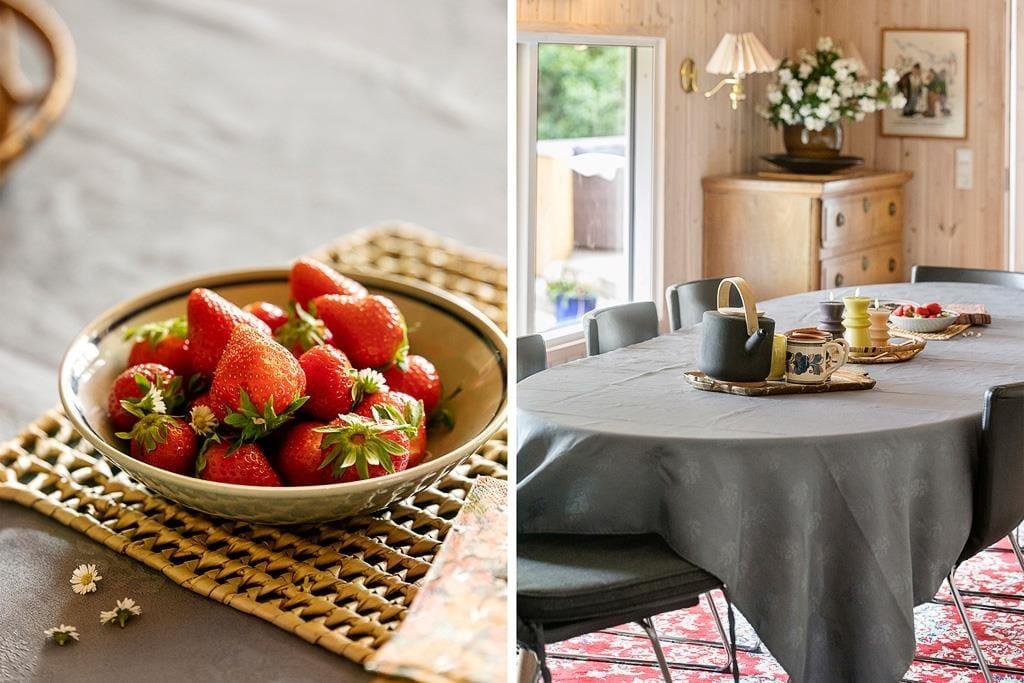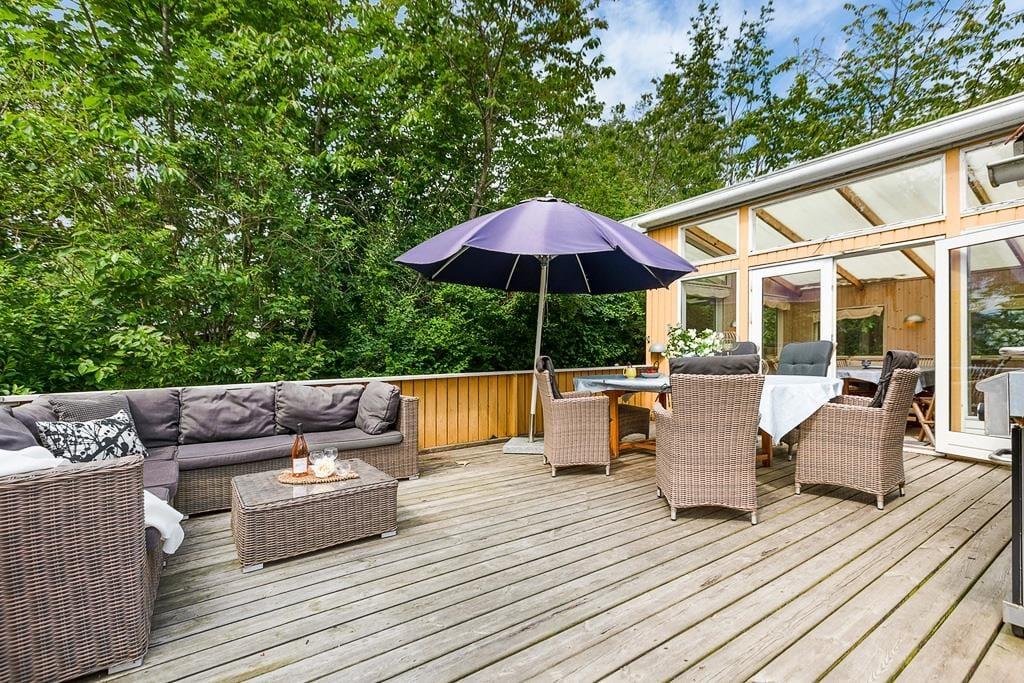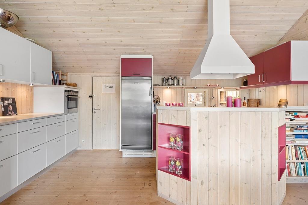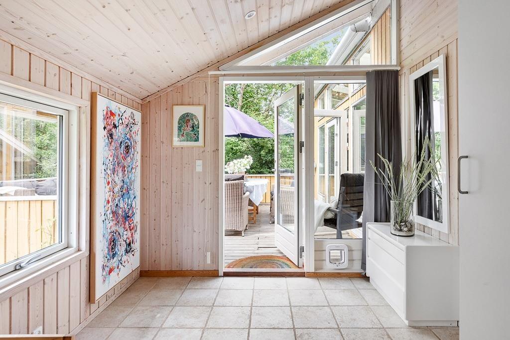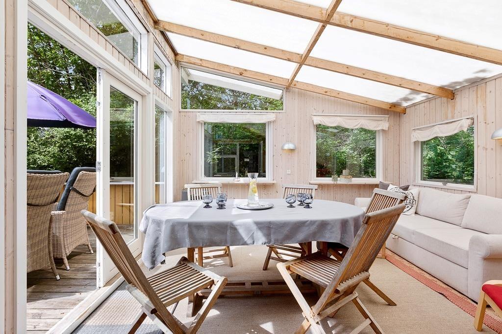 Når I træder ind i sommerhusets rummelige opholdsstue, mærker I straks hyggen. Stuen er indrettet med en komfortabel sofagruppe og en brændeovn, der skaber en varm og afslappet atmosfære på kølige aftener. Det åbne køkken er fuldt udstyret, så I kan tilberede lækre måltider til hele familien og nyde dem sammen ved spisebordet. I den lyse og hyggelige havestue (uopvarmet) kan I fordybe jer i lange samtaler og nyde de smukke sommeraftener med stearinlys på bordet. Her kan I sidde længe uden at bekymre jer om, at duggen falder. Fra havestuen er der direkte adgang til en dejlig terrasse, hvor I kan nyde jeres måltider i det fri.