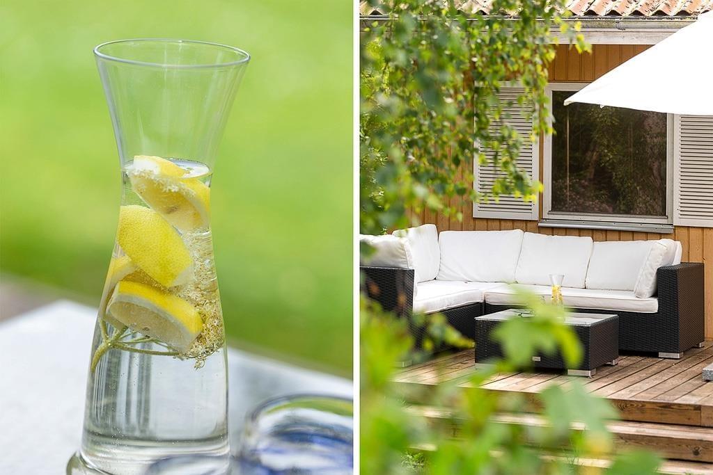 De to rummelige terrasser er perfekte til afslapning og udendørsmåltider. Nyd morgenkaffen eller en kølig forfriskning i skyggen af parasollen, mens I ser børnene lege i legetårnet eller hoppe på trampolinen. Den store, velholdte græsplæne indbyder til leg og boldspil for hele familien, og I kan nemt organisere familieaktiviteter som fodbold, badminton eller krocket. Grillen er et ideelt sted til at tilberede lækre måltider under åben himmel, mens I lytter til lyden af børnenes latter og duften af grillmad. Efter en dag med sjov og leg i haven kan I samles, slappe af i de komfortable havemøbler og nyde en stjerneklar aften.