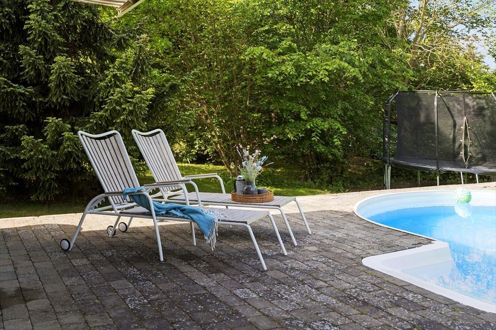 Når temperaturen stiger, er poolområdet det oplagte sted at tilbringe dagen. Her kan I tage en forfriskende dukkert i den indbydende pool eller blot slappe af på liggestolene med en kold drink i hånden. Poolen er perfekt til både leg og afslapning – børnene kan boltre sig i vandet, mens de voksne slapper af.