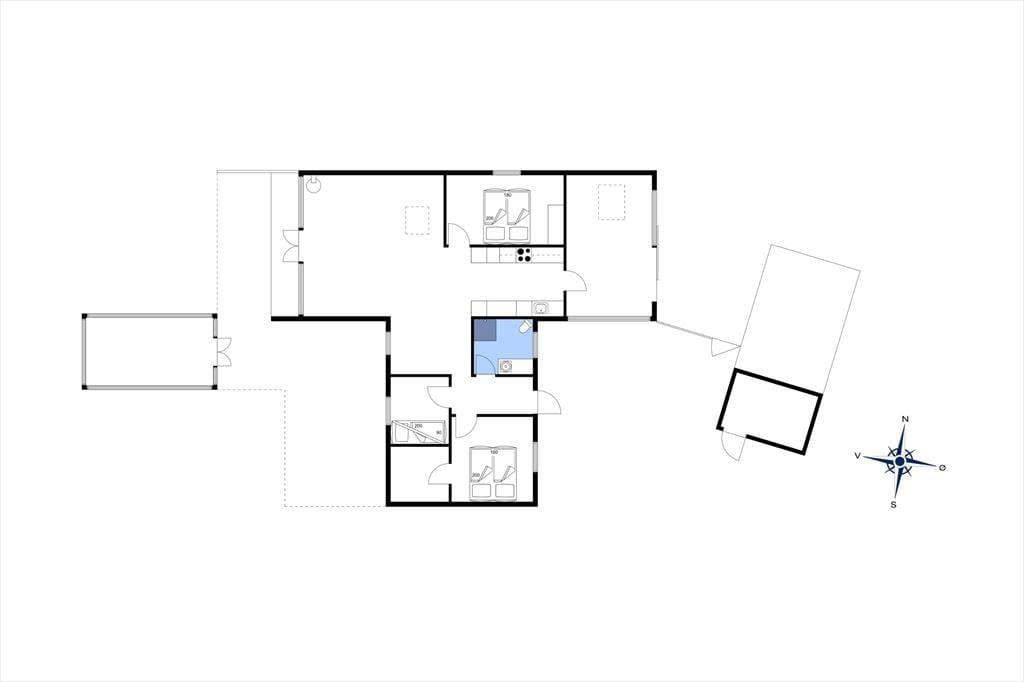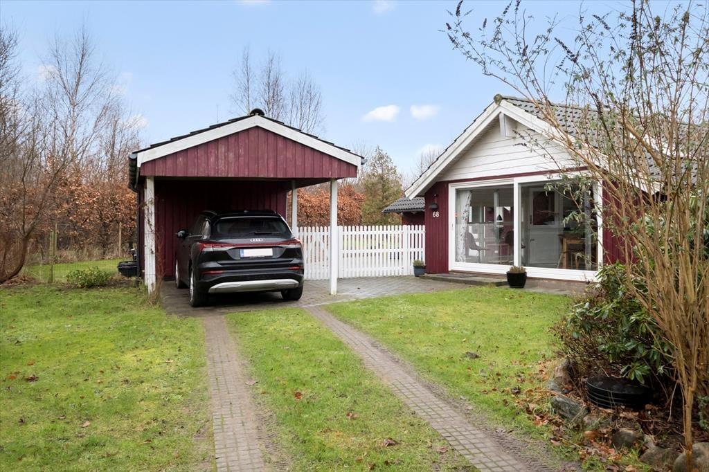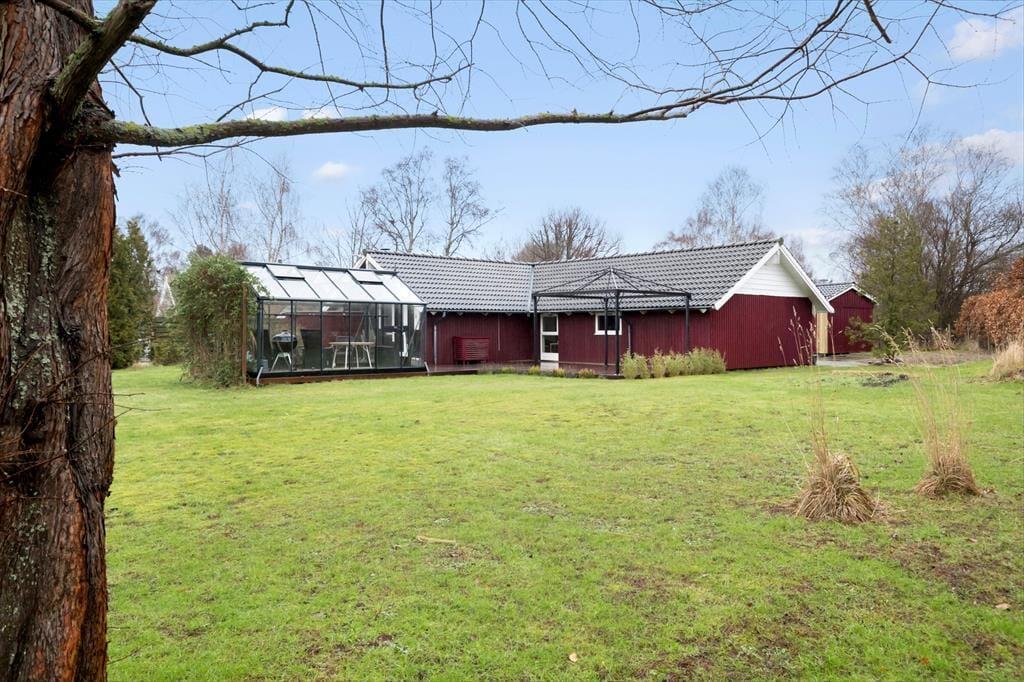 Sommerhusets udendørsområder byder på masser af plads til både afslapning og aktiviteter. Den store træterrasse indbyder til afslappende stunder i solen, mens den delvist lukkede have giver plads til leg og boldspil. Om aftenen kan du tænde op i grillen og nyde et måltid under åben himmel, mens solen langsomt går ned over landskabet. I haven finder du et charmerende orangeri, som giver mulighed for at nyde naturen i læ og ro – et perfekt sted til en stille stund med en kop kaffe eller et glas vin. Fra haven har du en flot udsigt over de åbne marker, hvor årstidernes skiftende farver skaber en idyllisk kulisse.