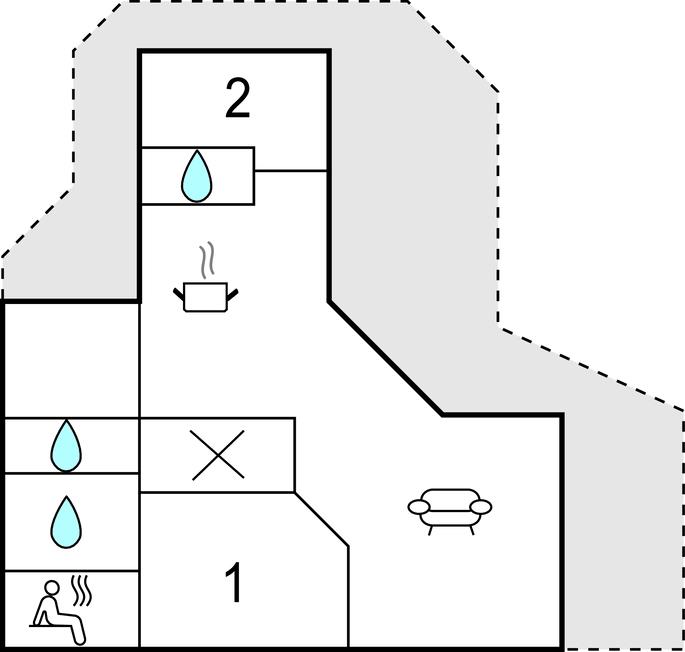 Badeværelse (nr. 1) - WC. Varmt og koldt vand. Bruser