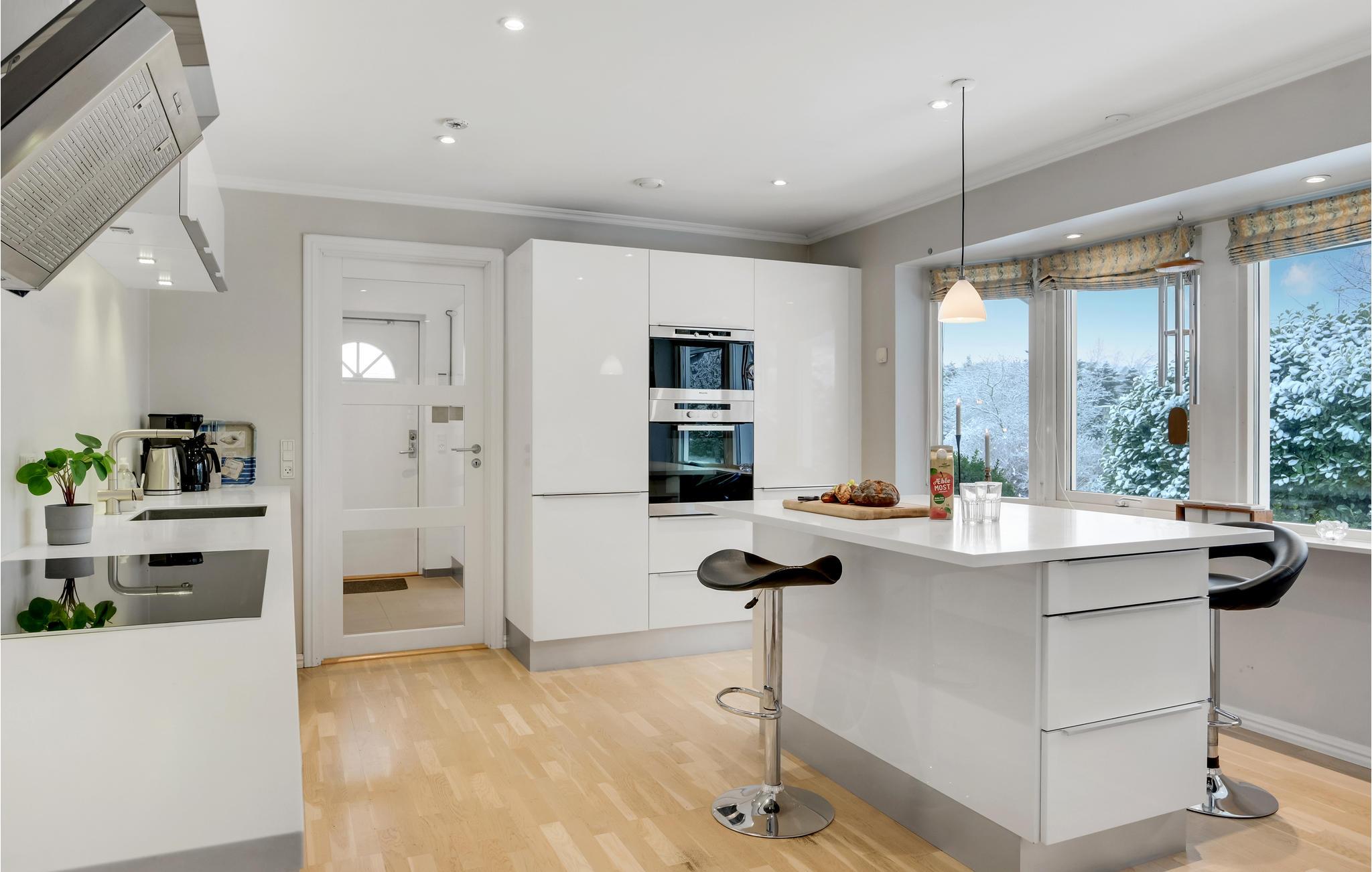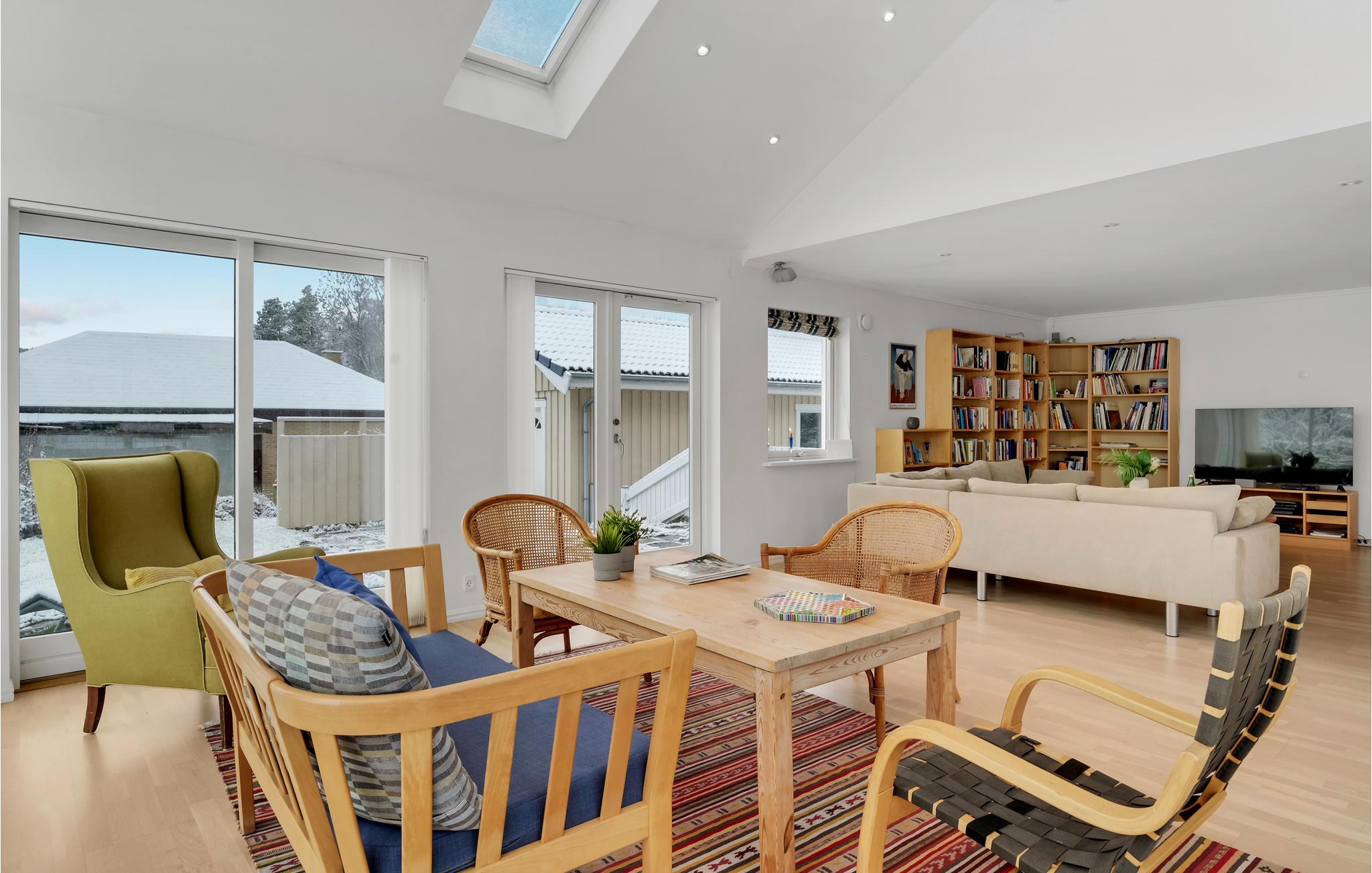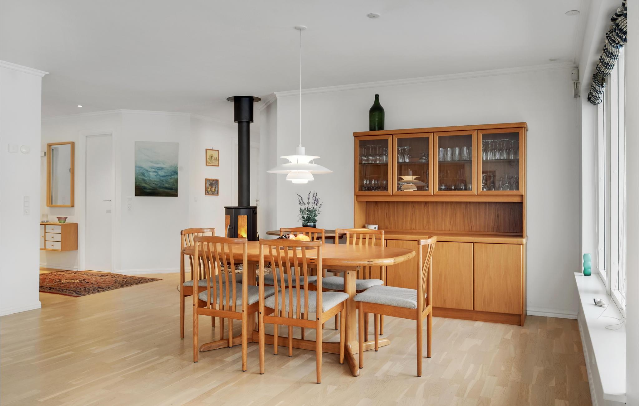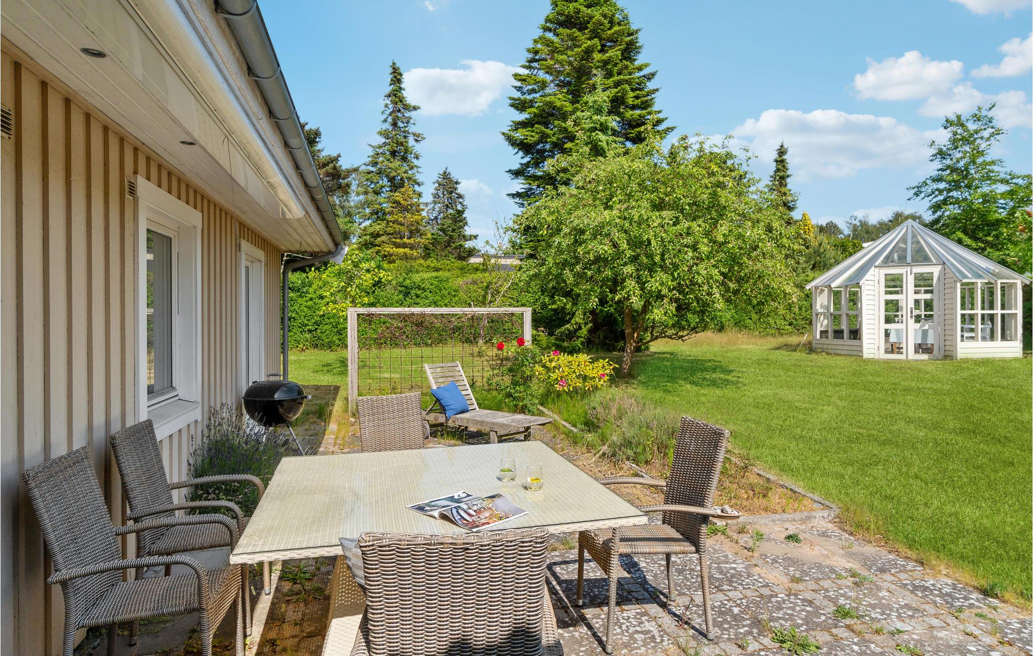Velkommen til det indbydende hus, hvor I kan tilbringe en dejlig ferie. Den lyse og hjemlige indretning skaber en hyggelig atmosfære, hvor I kan slappe af og lægge den hektiske hverdag bag jer. Nyd måltiderne sammen med en smuk udsigt over haven og afslappede aftener i opholdsstuen, hvor I kan slå jer ned i sofaen og tage en bog fra hylden eller bare sludre, mens flammerne knitrer i brændeovnen. Komfortable liggestole på terrassen inviterer jer til at slappe af. Tilbered lækre måltider til hele gruppen på grillen og benyt lejligheden til at tilbringe hyggelige timer udendørs.