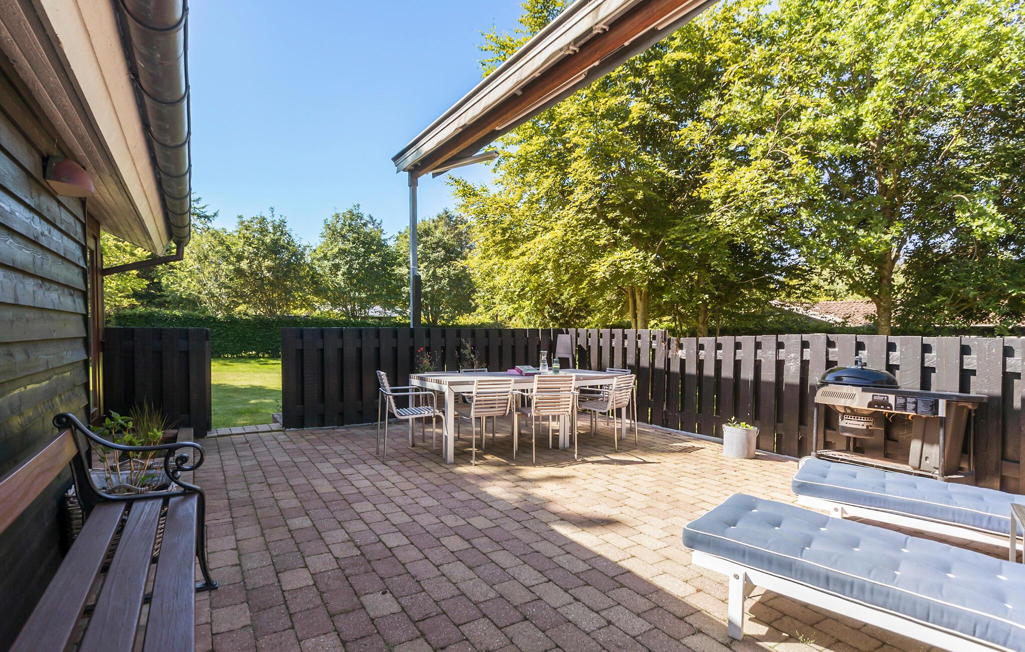 I de varme sommermåneder indbyder den store terrasse til at nyde solen og til at få det bedste ud af dagen. Hvis vejret ikke lige skulle arte sig, kan terrassen nemt overdækkes, alt imens de små feriegæster leger i den store have i al slags vejr.