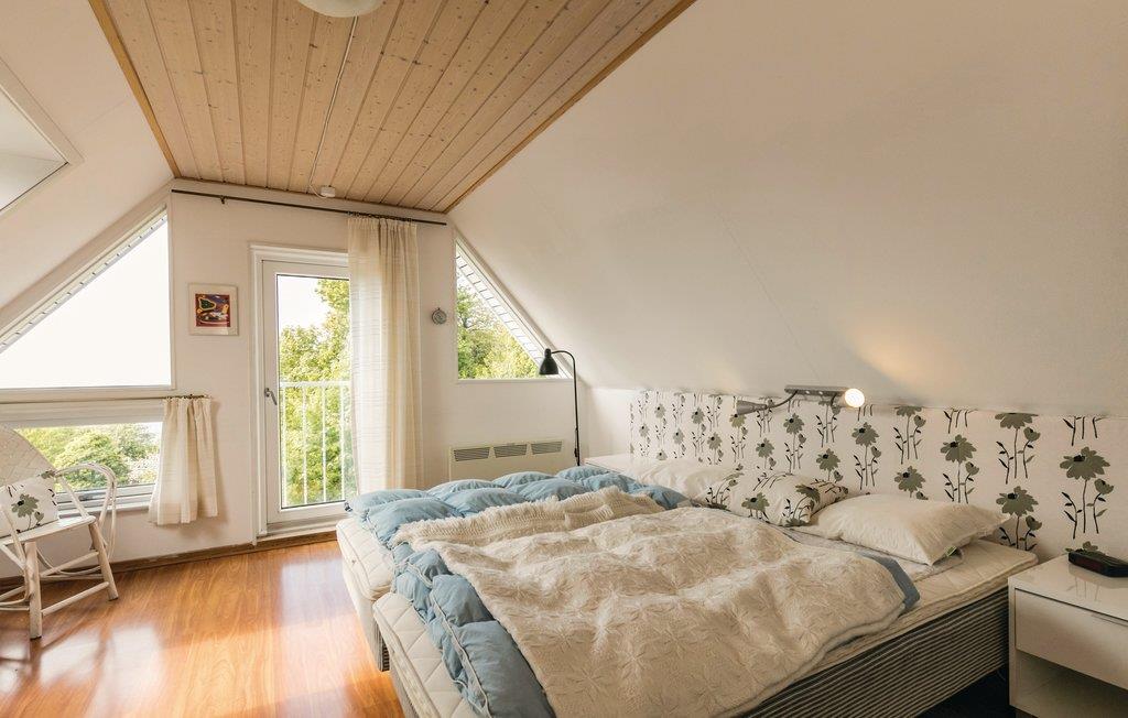 Charmerende træsommerhus i Vang med stor terrasse, delvis havudsigt og tæt på havnemiljø og smuk natur.