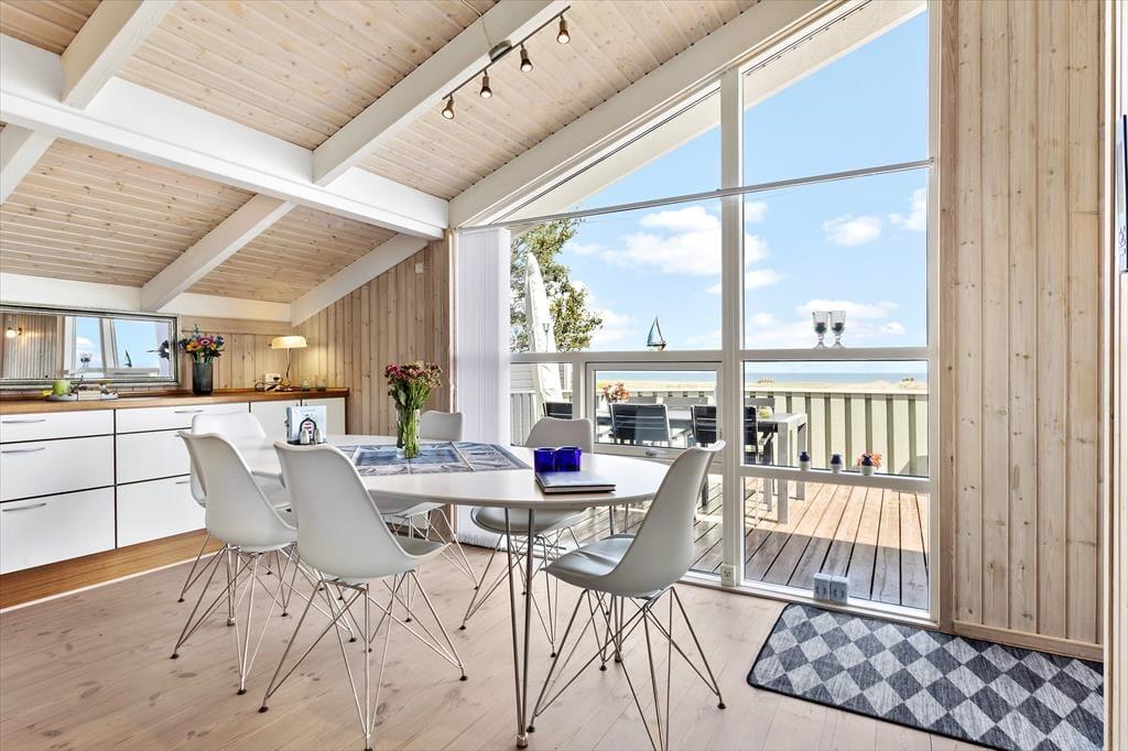 Sommerhuset emmer af varme og hygge takket være den lyse og hjemlige indretning, der skaber en afslappet atmosfære fra første øjeblik, du træder ind ad døren. Med de store vinduespartier inviteres udsigten til Kattegat helt ind i opholdsrummet, hvor du kan slå dig ned med en kop kaffe og lade blikket vandre ud over vandet. Huset er fyldt med små, personlige detaljer og komfortable møbler, der indbyder til nærvær og afslapning. Tænd op i brændeovnen på en kølig aften, eller saml familien til en hyggelig middag i den lyse spisestue. Efter en dag fyldt med oplevelser kan du trække dig tilbage til et af de hyggelige værelser og lade roen sænke sig.