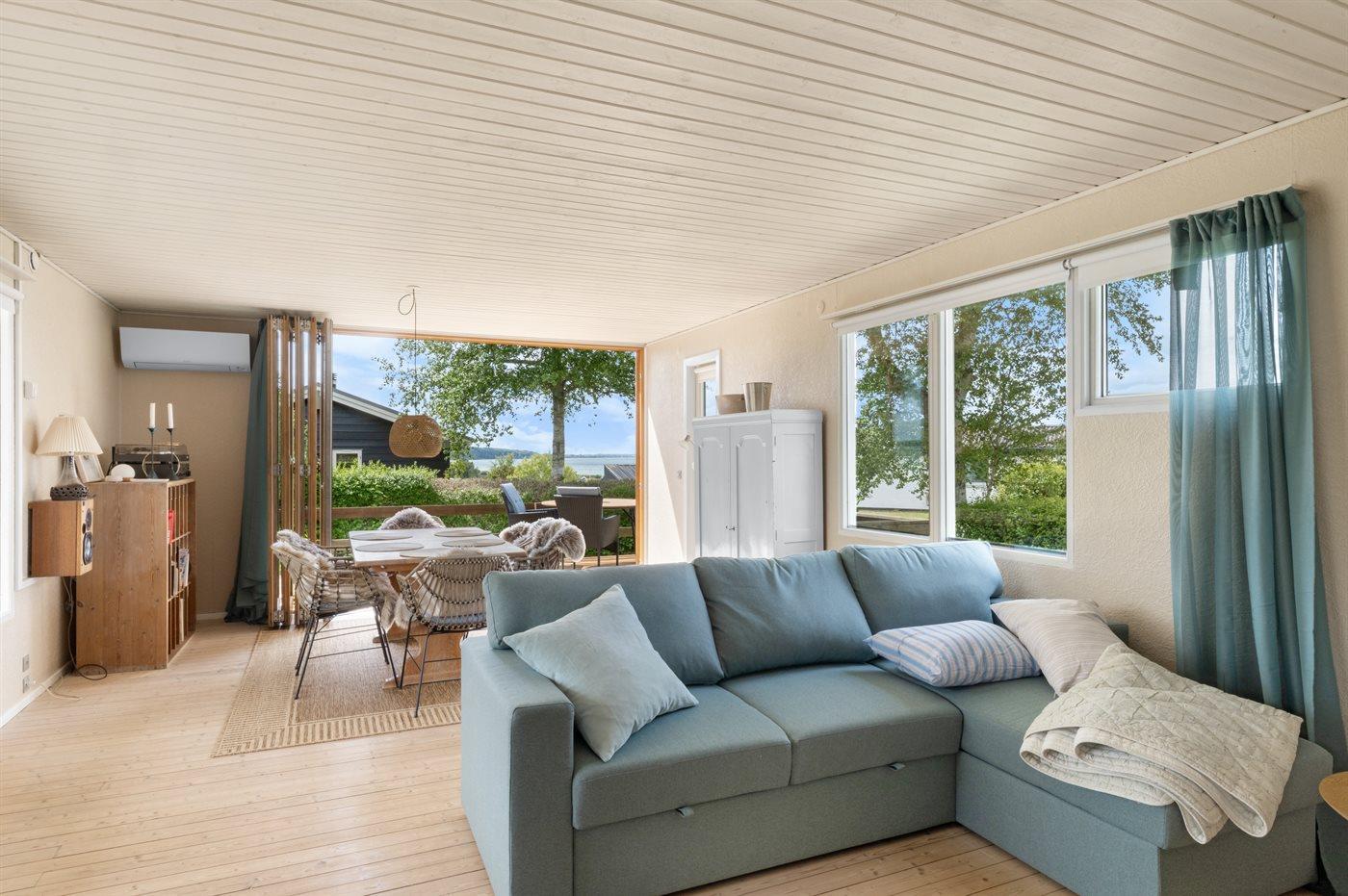 Et hyggeligt sommerhus med en skøn beliggenhed - med udsigt ud over Båring Vig og indsejlingen til Lillebælt. Både fra huset og den hævede træterrasse, kan du nyde udsigten ud over vandet.
