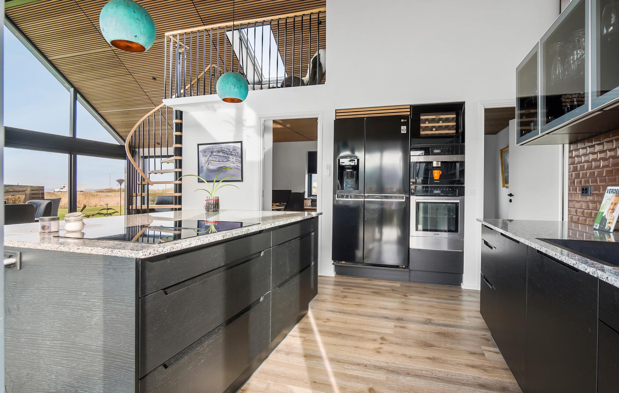 Moderne feriehus med panoramaudsigt og terrasse ved Varbjerg Strand.