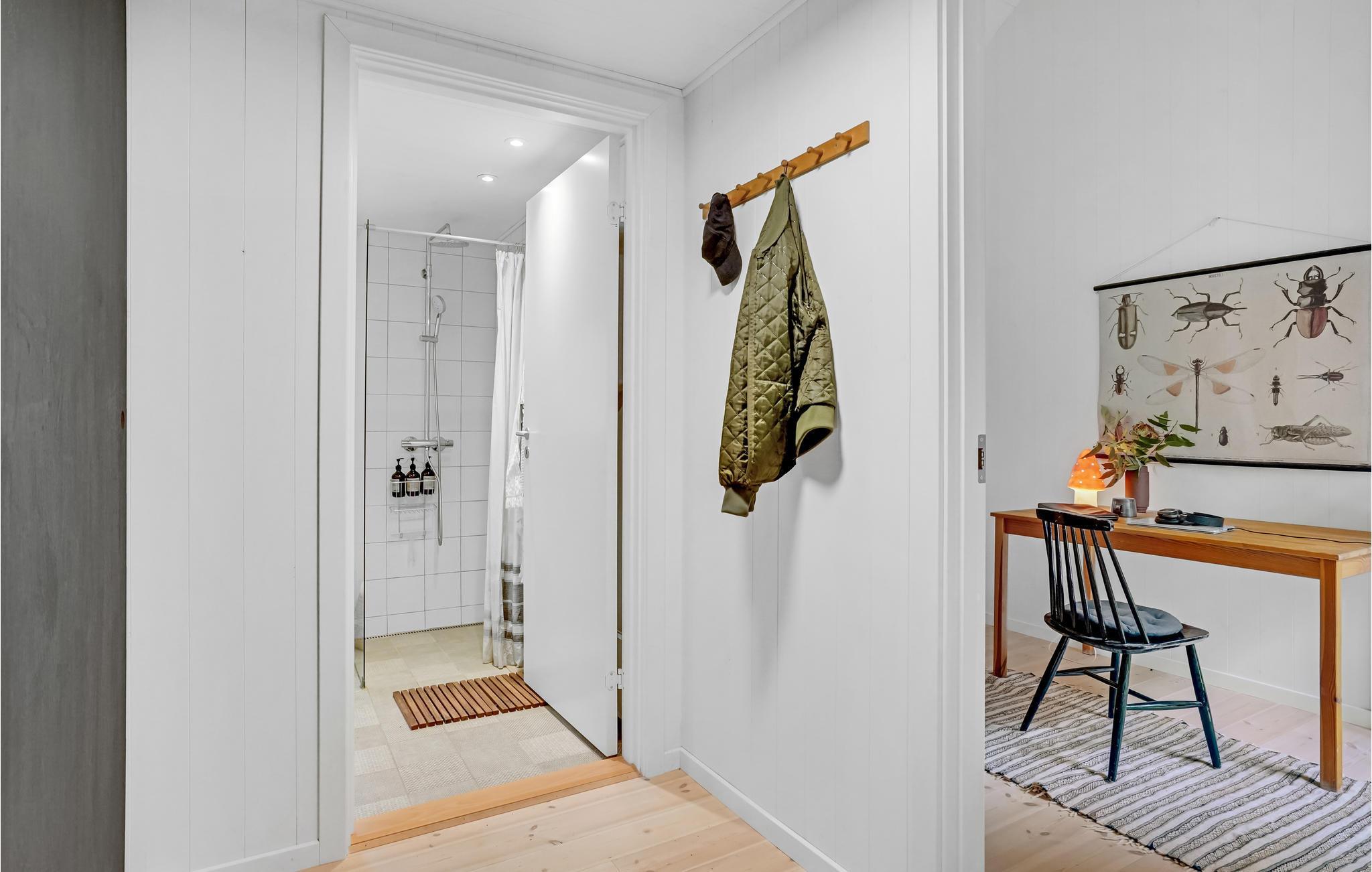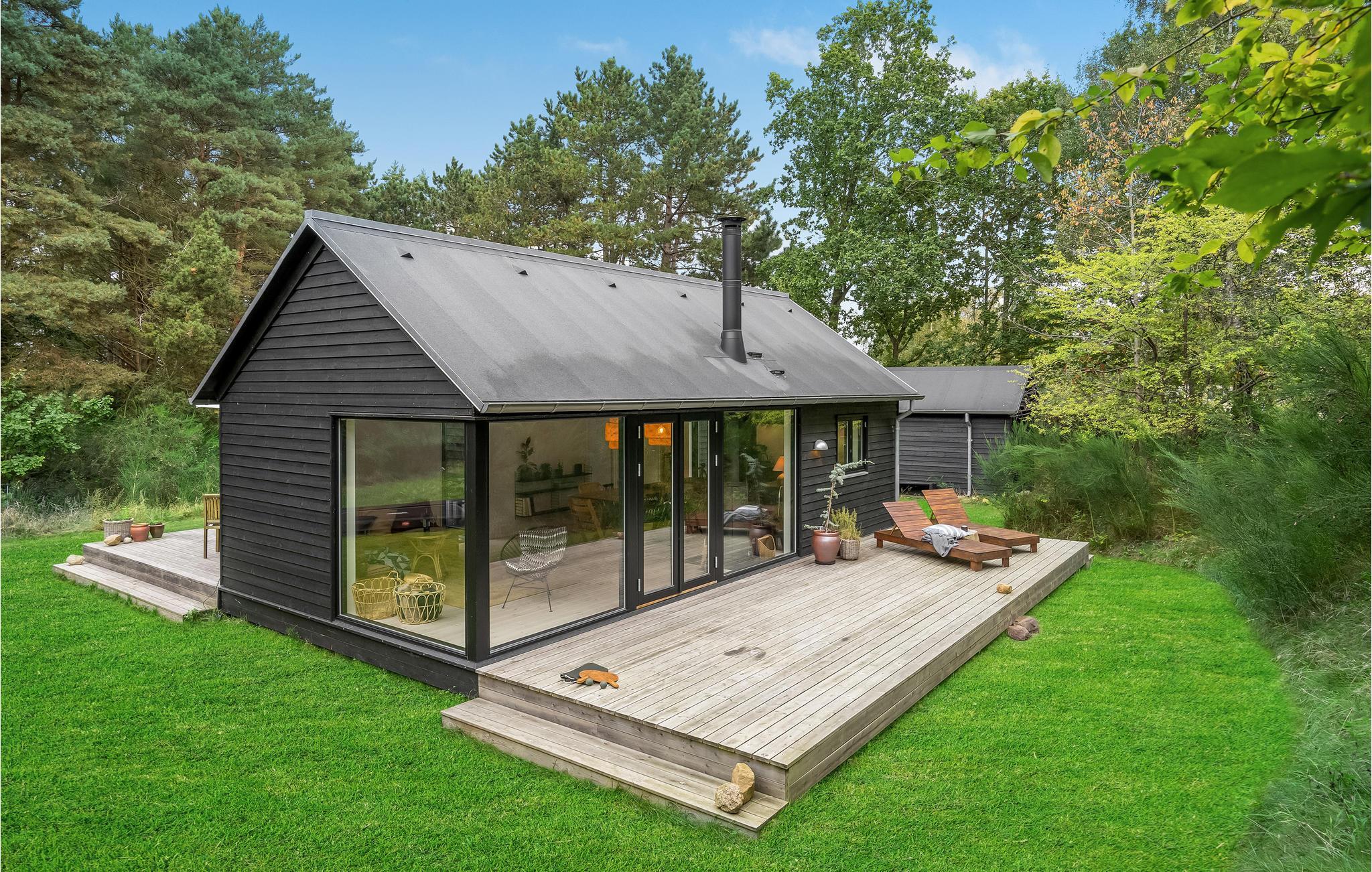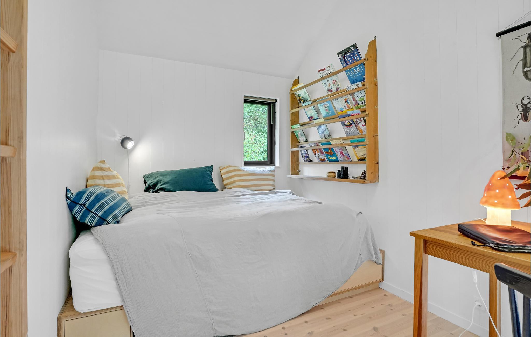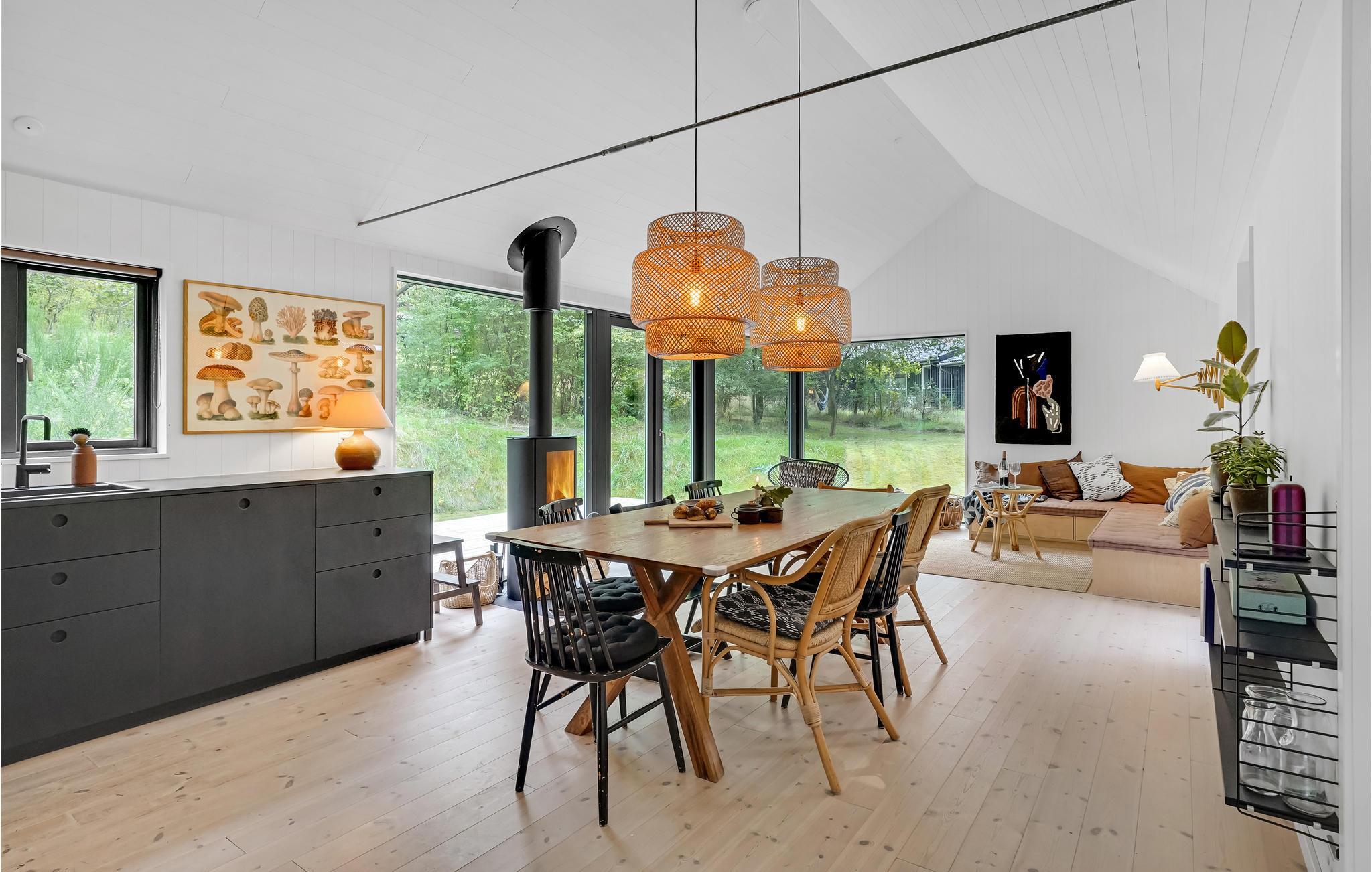 Utroligt lækkert feriehus med køkken i åben kombination med stue/spisestue med brændeovn, 2 gode soveværelser samt badeværelse med bruser. Fra stuen samt det ene soveværelse er der udgang til en åben terrasse, hvor I kan nyde solen i fulde drag. Alt efter årsiden, er det muligt at skimte vandet igennem træerne, og når I står ude på vejen, kan I se ned til Sejerø Bugten. Det er ren afslapning med højt til himlen og ro til sjælen, tag en god bog og find læ på en af terrasserne og nyd det.