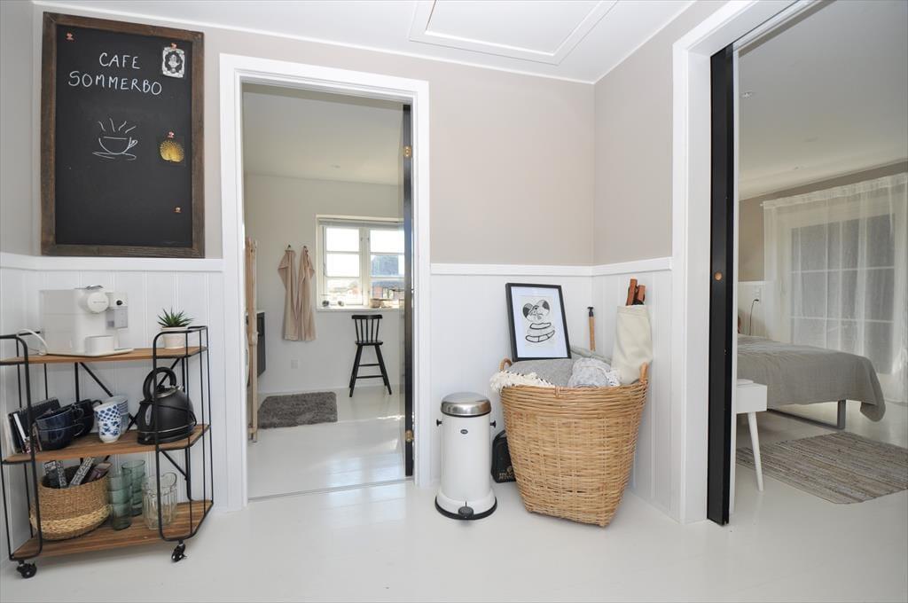 Smukt og lyst indrettet feriehus hvor der emmer af overskud og ro, her kan I trække stikket og nyde feriens hyggelige stunder for hele familien. Kast jer ud i spænende madlavning i det smukke køkken der ligger i åben forbindelse med opholdsstuen, her har I masser af muligheder for at være sammen på trods af at I laver forskellige ting, eller lad maden simre uden af bekymre jer om den brænder på. Smid jer i det hyggelige sofahjørne og lad roen der sænke sig over jer, og glem ikke at tænde op for den hyggelige indbyggede brændeovn der spreder en hyggelig knitrende lyd.