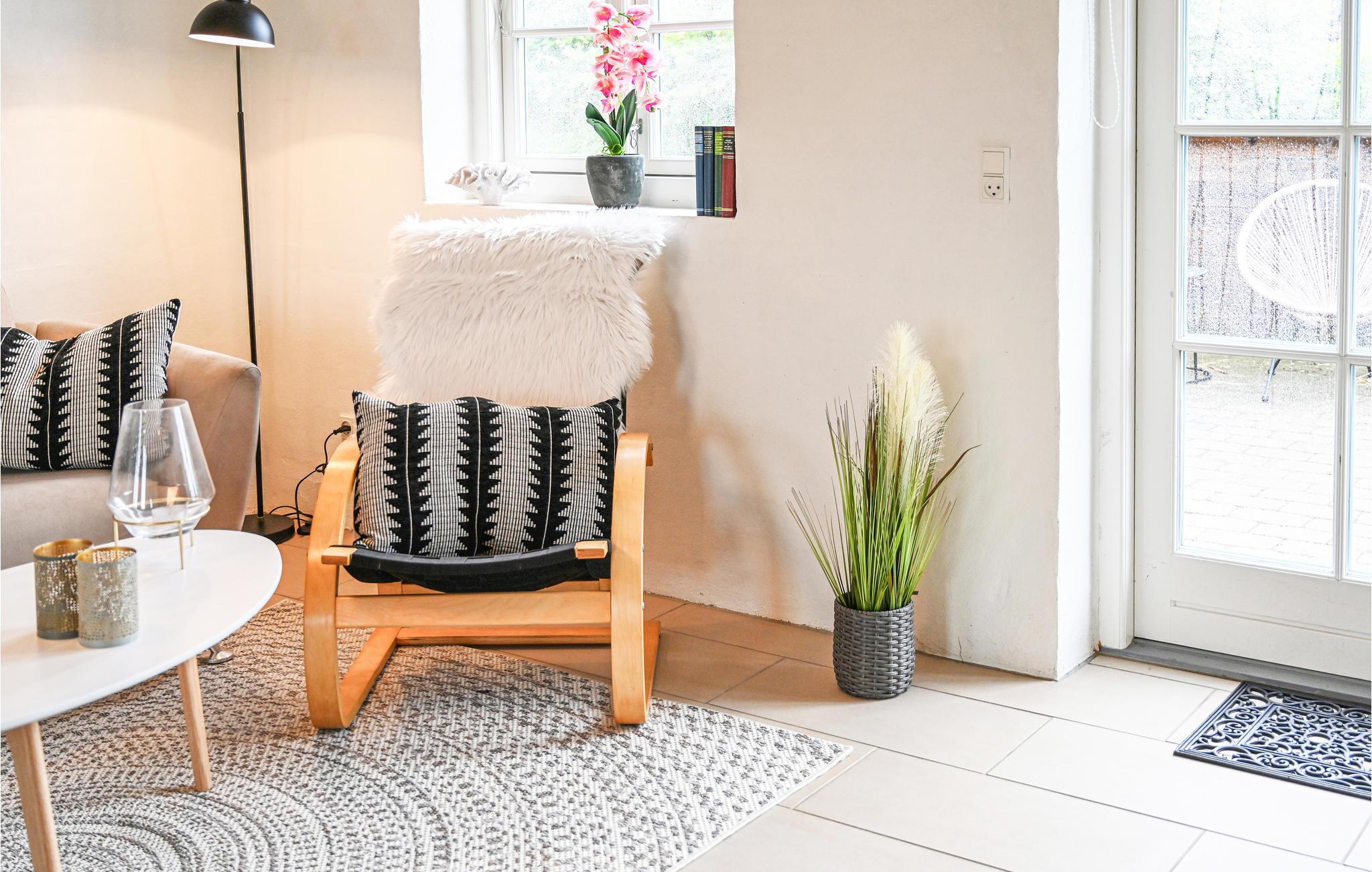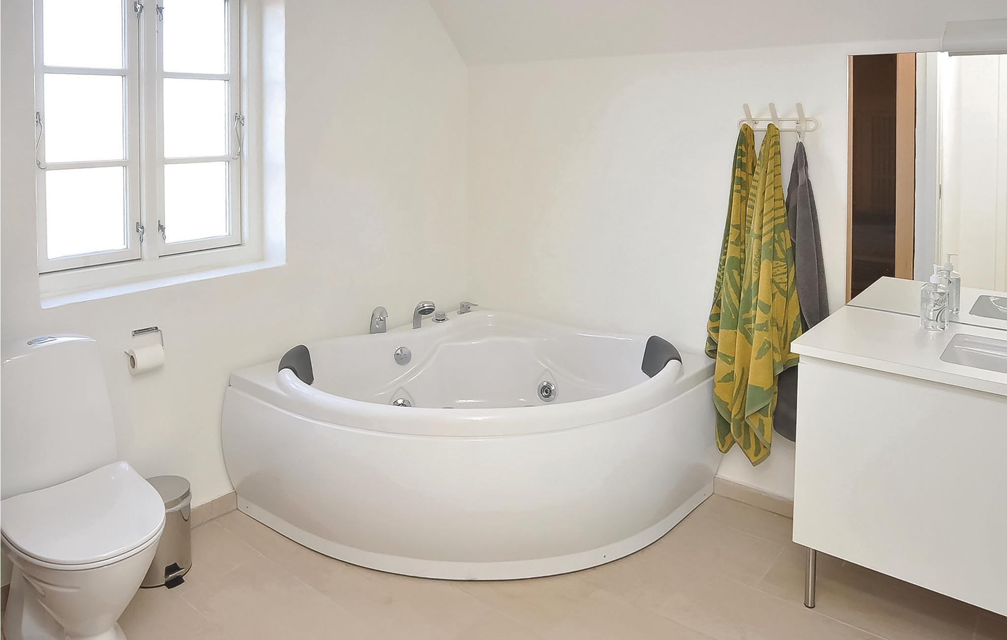 I den ene ende af huset er der to gode soveværelser samt et dejligt stort badeværelse med spabad, dampkabine og infrarød sauna (bliver 60 grader varm). Den anden ende af huset indeholder yderligere to gode soveværelser samt et godt badeværelse med brus. Hvis I en dag ikke har lyst til at stå for madlavningen selv, ligger der både restaurant, købmand, udendørs badeland, minigolf m.m. blot 5 minutters gang fra huset.