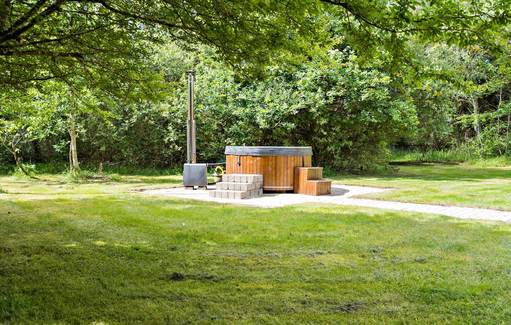På de varme dage kan I trække udenfor og nyde solen på den skønne, ugenerede grund. De voksne kan tage den med ro på terrassen, mærke solen og drikke en god kop kaffe, mens børnene løber rundt og brænder energi af på grunden. Hvis vejret holder, kan I ud på eftermiddagen tænde op i grillen og tilberede familiens livretter, som nydes allerbedst under den lune aftensol med et godt glas vin. Og måske I skal runde aftenen af med en tur i vildmarksbadets varme vand?