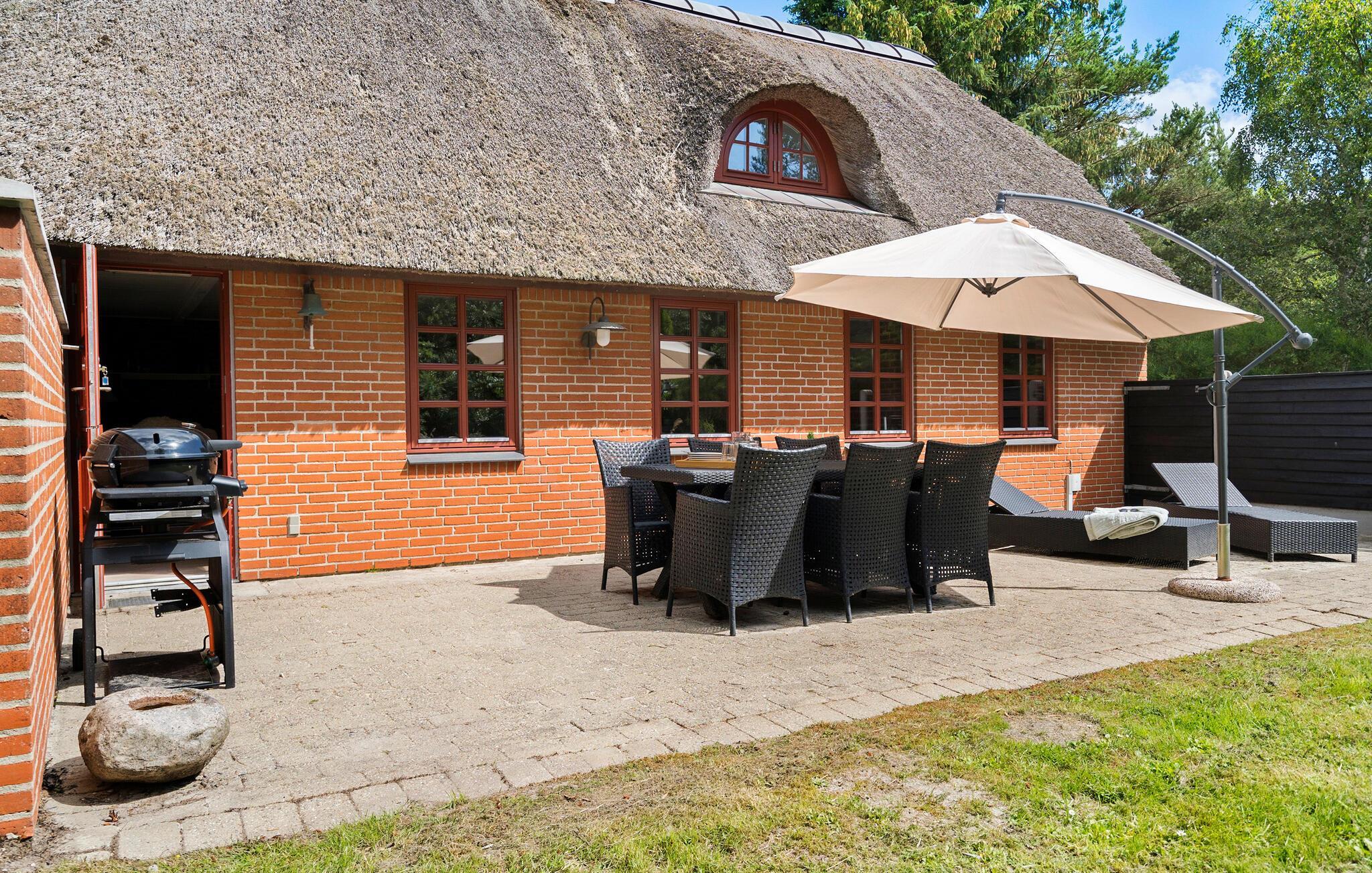 Tag familien under armen og rejs til det vestligste Jylland, hvor I tæt på havet og Vedersø Klit får base i dette attraktive stråtagshus. Indvendigt emmer det af hygge med fritlagte murværk, rustikke trælofter og et komfortabelt møblement, der gør det nemt at slappe af med det samme, I ankommer. Hvis vinden bider lige vel meget, kan I fyre op i brændeovnen, der giver et varmt, knitrende lydtapet til madlavningen i det veludstyrede køkken og aftenhyggen i det rummelige sofahjørne med brætspil eller en god film på tv'et.