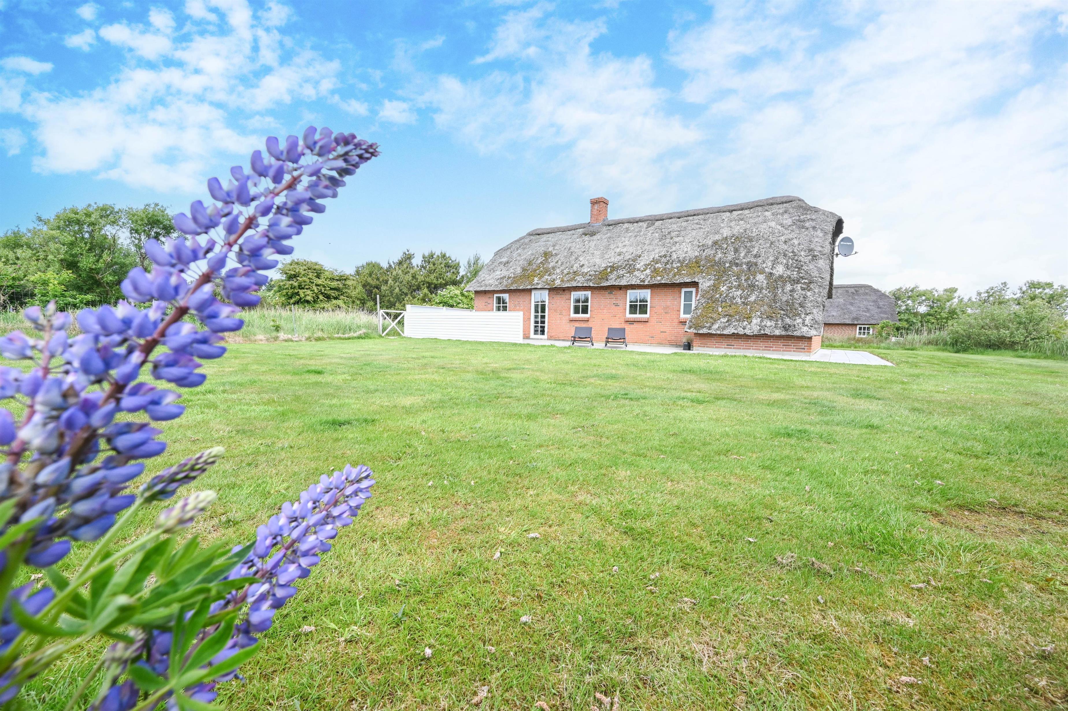Huset ligger på en dejlig, helt indhegnet grund, hvor både børn og hunde trygt kan lege og nyde ferien. Den ugenert have og den sydvendte terrasse med gode læforhold danner de ideelle rammer for afslapning, solbadning eller en rolig stund med en kop kaffe og fuglesang i baggrunden.