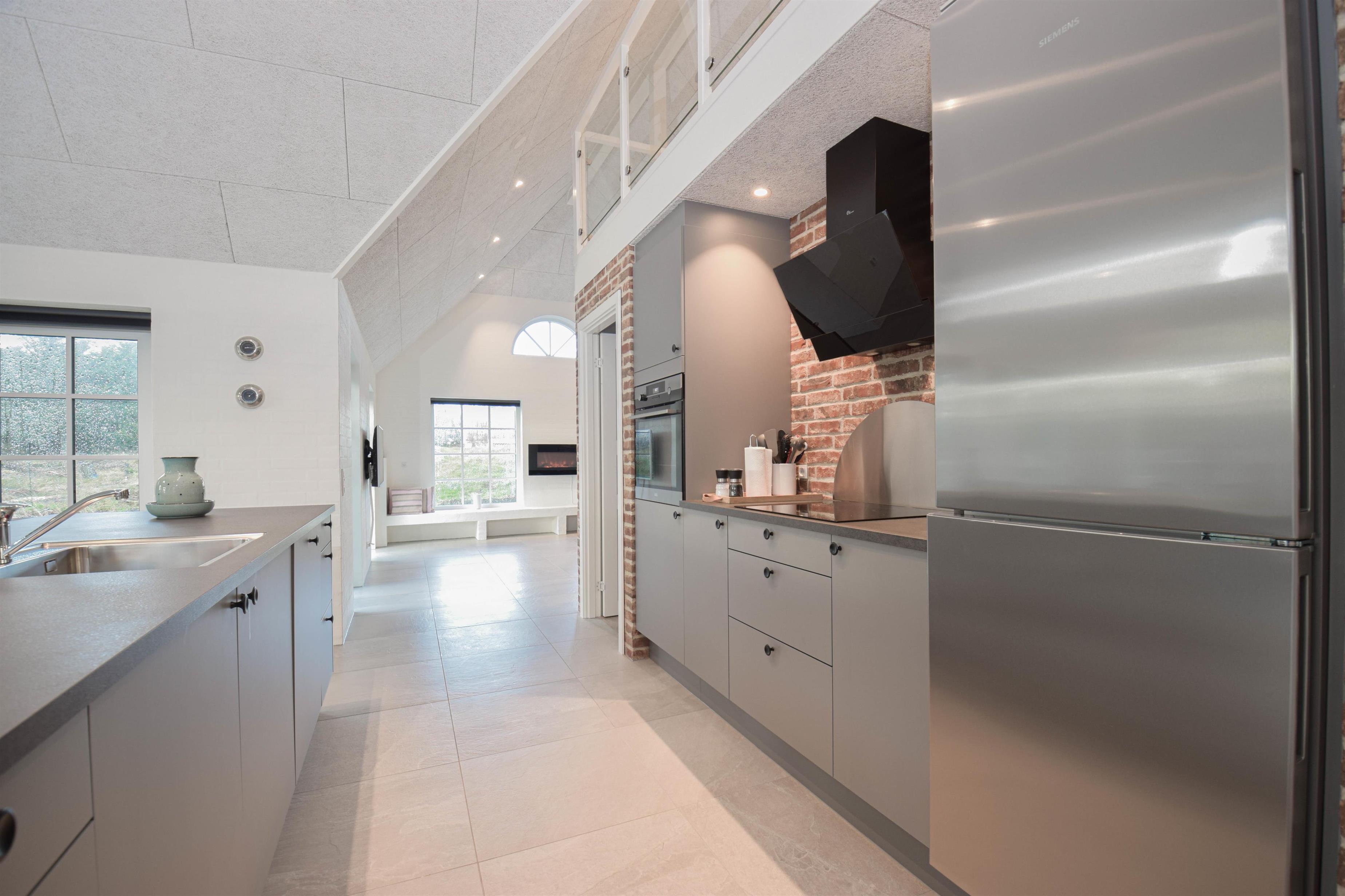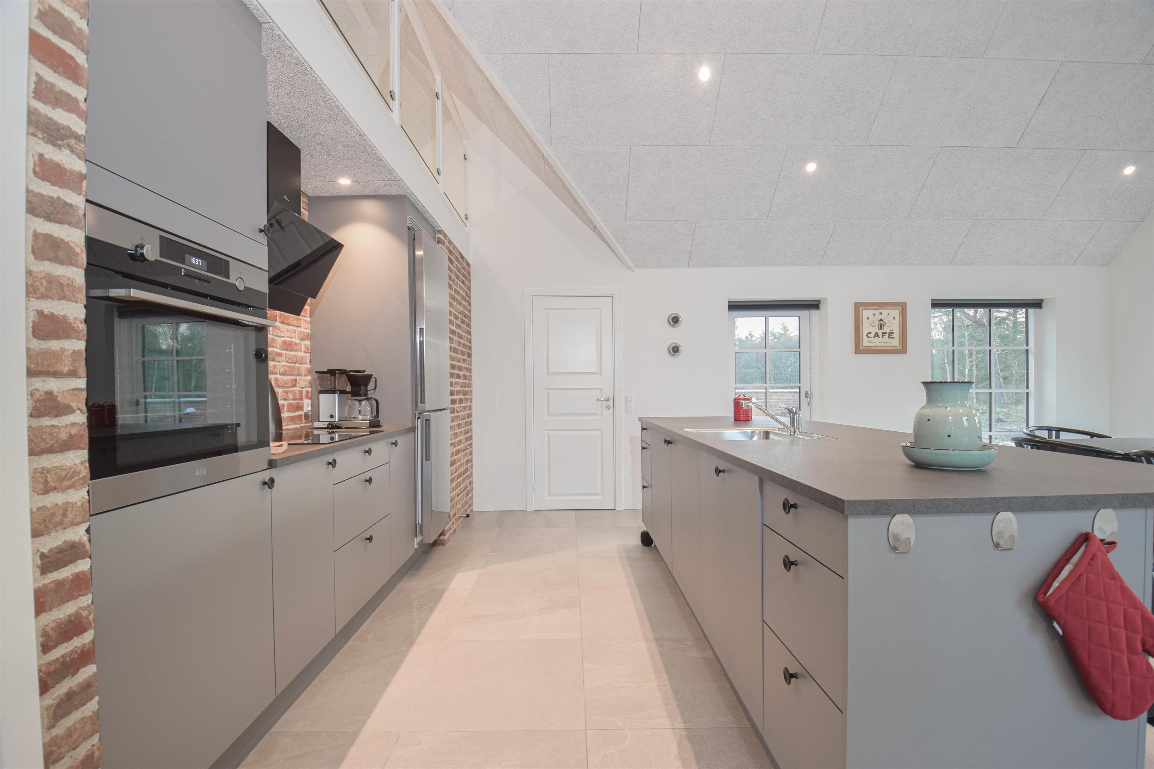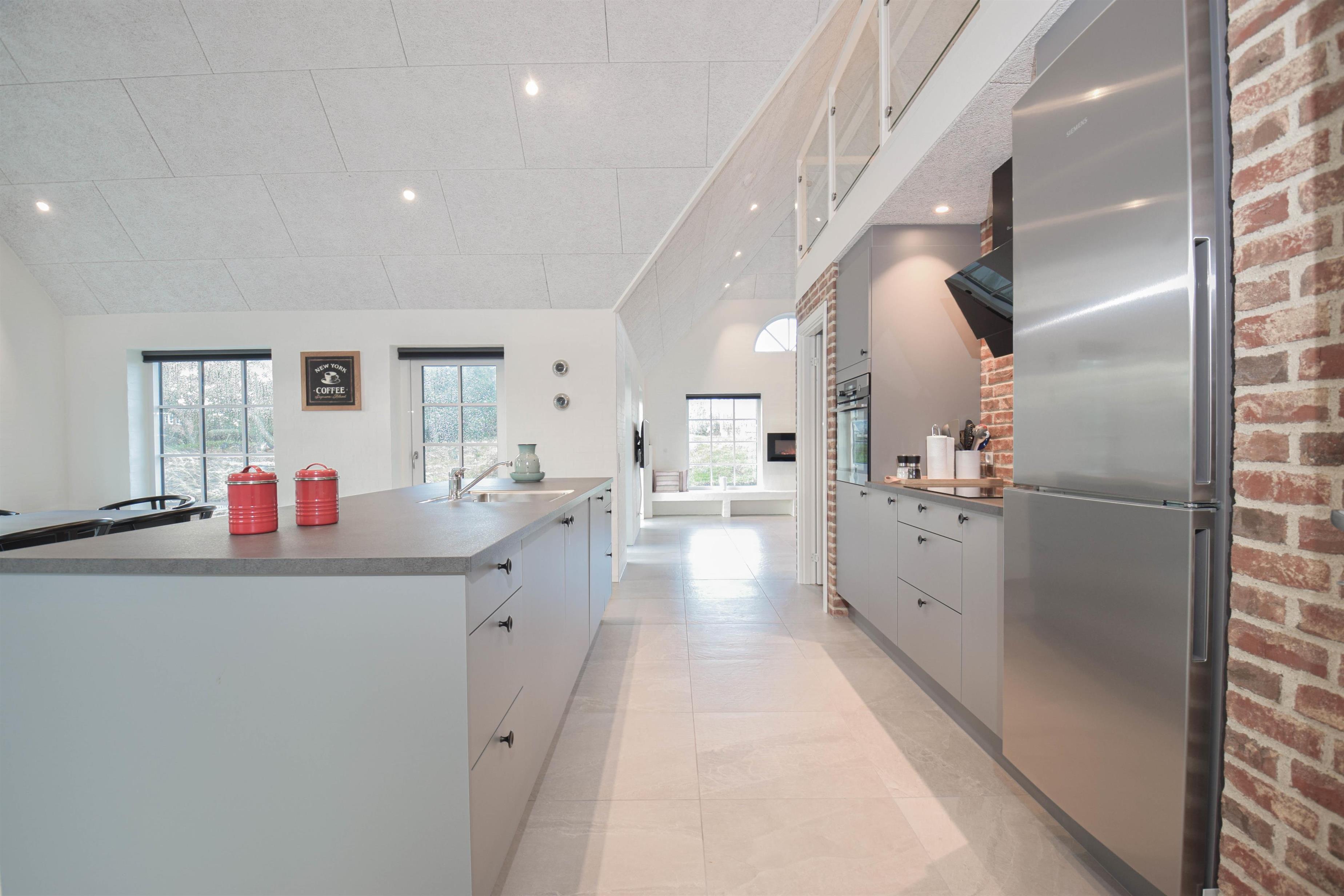 Det store køkken/alrum er hjemmets naturlige samlingspunkt, hvor der er god plads til madlavning, fællesskab og hyggelige stunder.