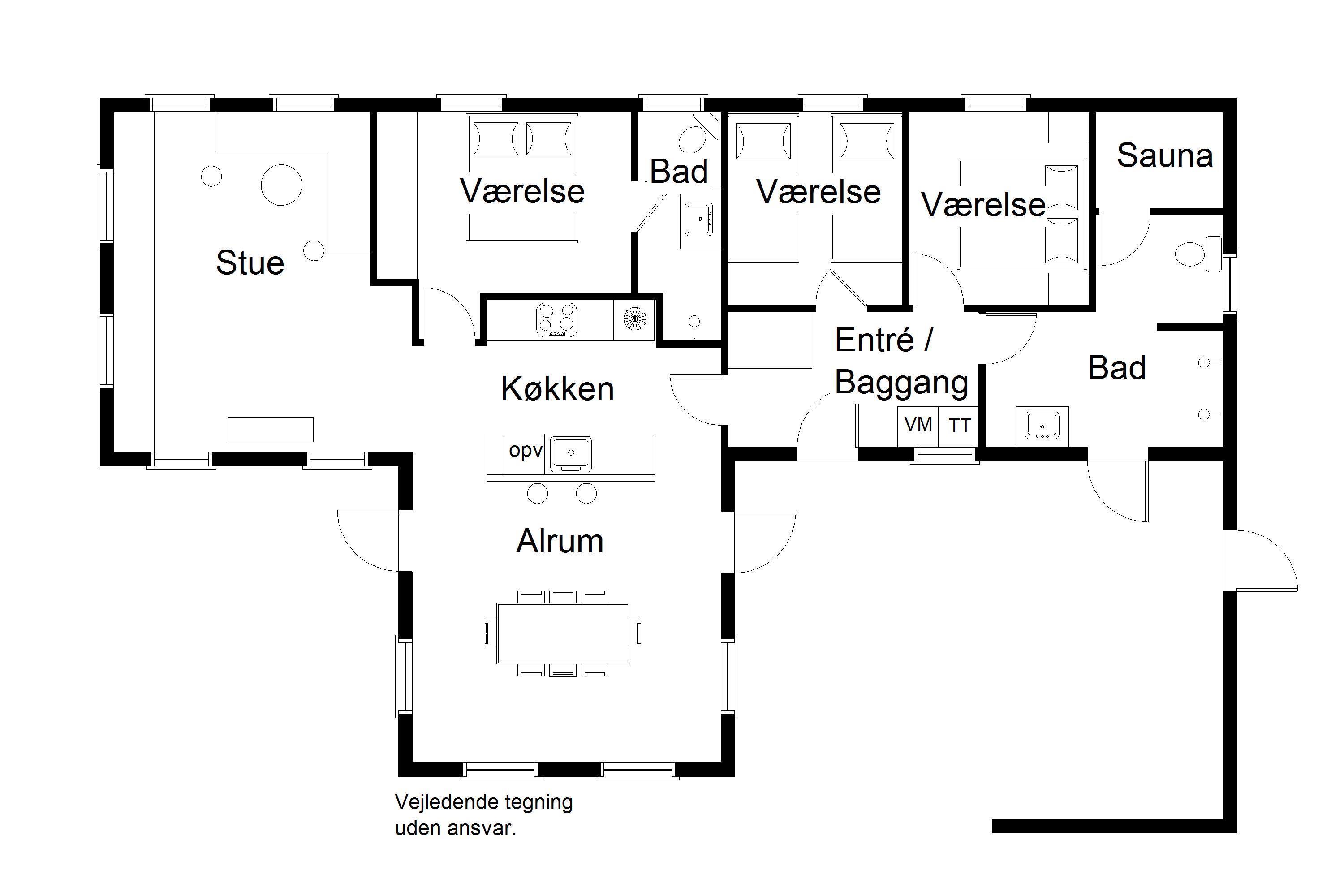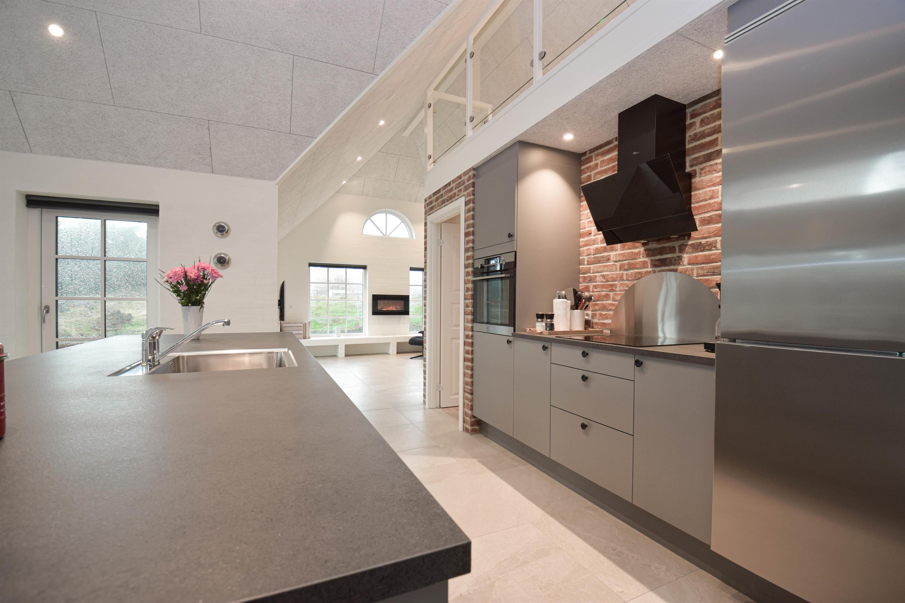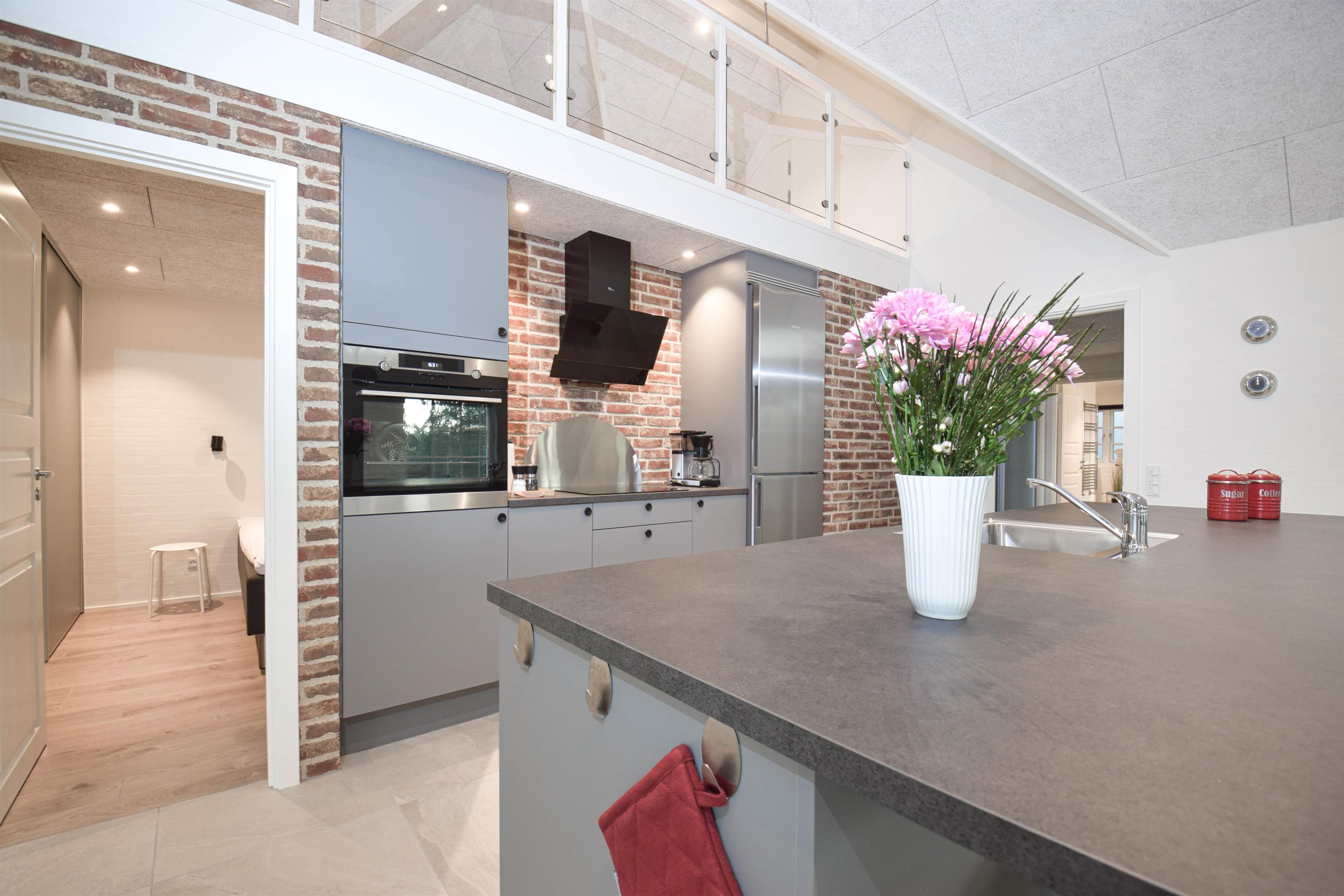 Det store køkken/alrum er hjemmets naturlige samlingspunkt, hvor der er god plads til madlavning, fællesskab og hyggelige stunder.