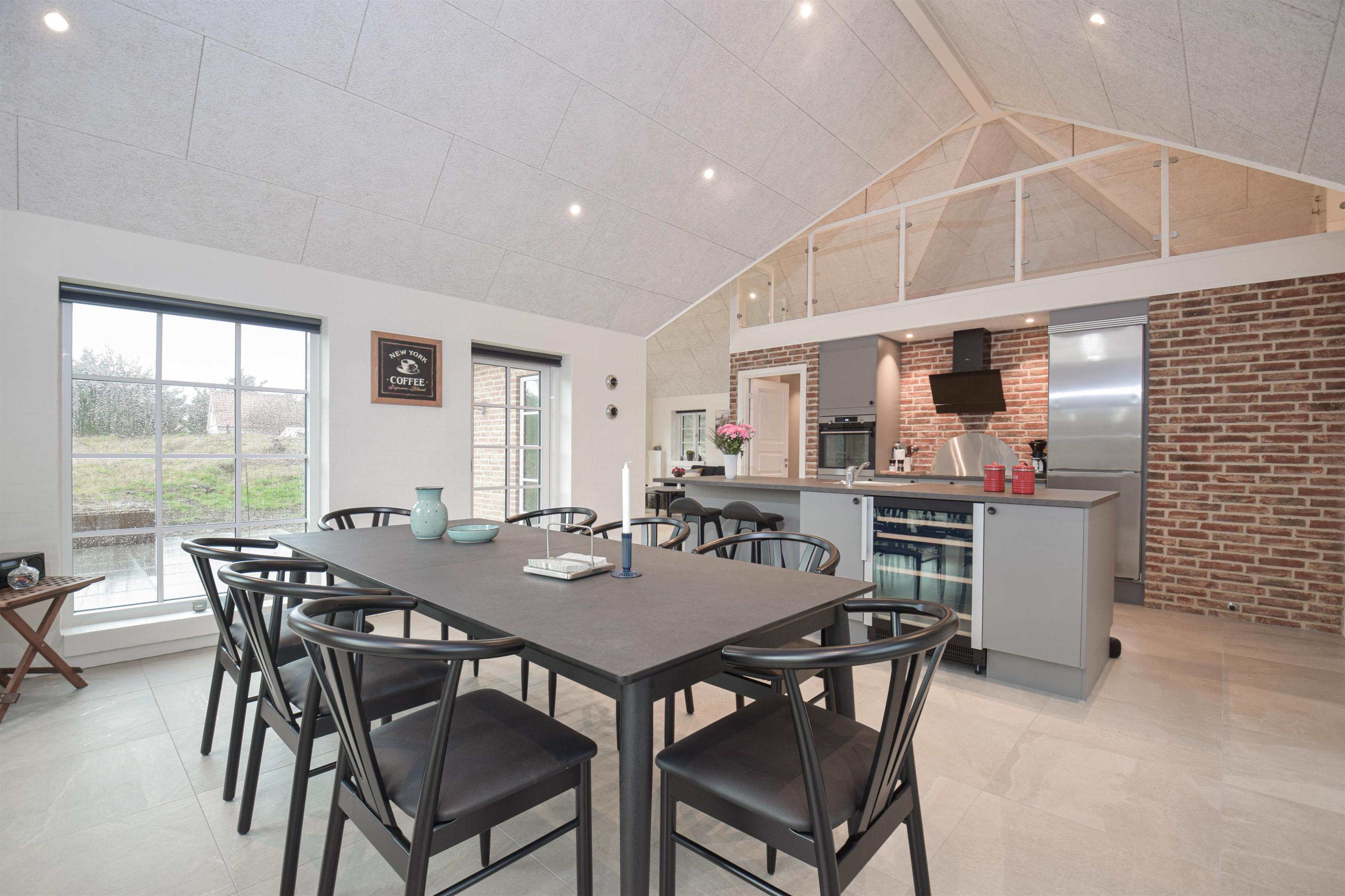 Stort køkken/alrum med masser af lys og udgang til to terrasser