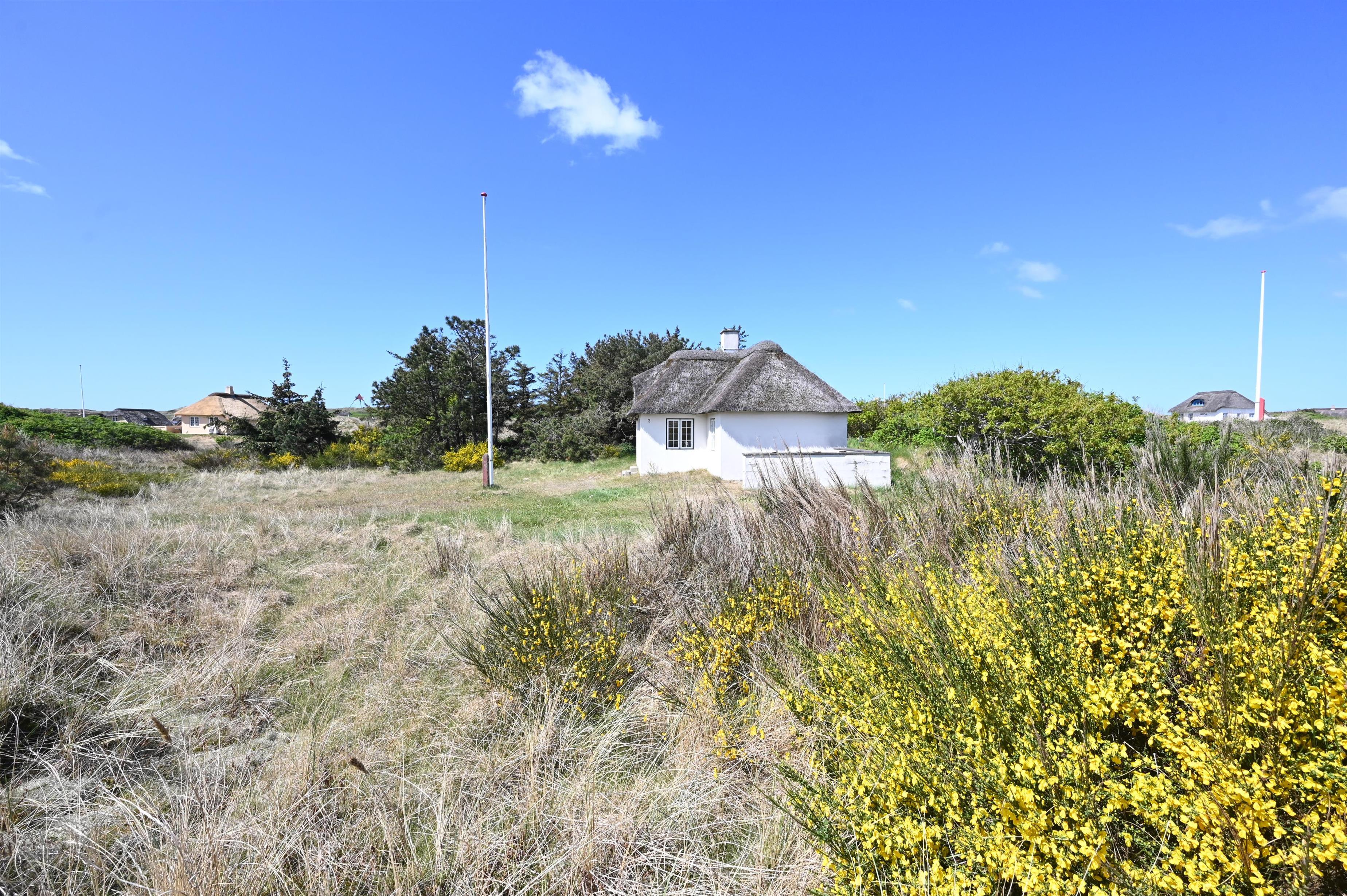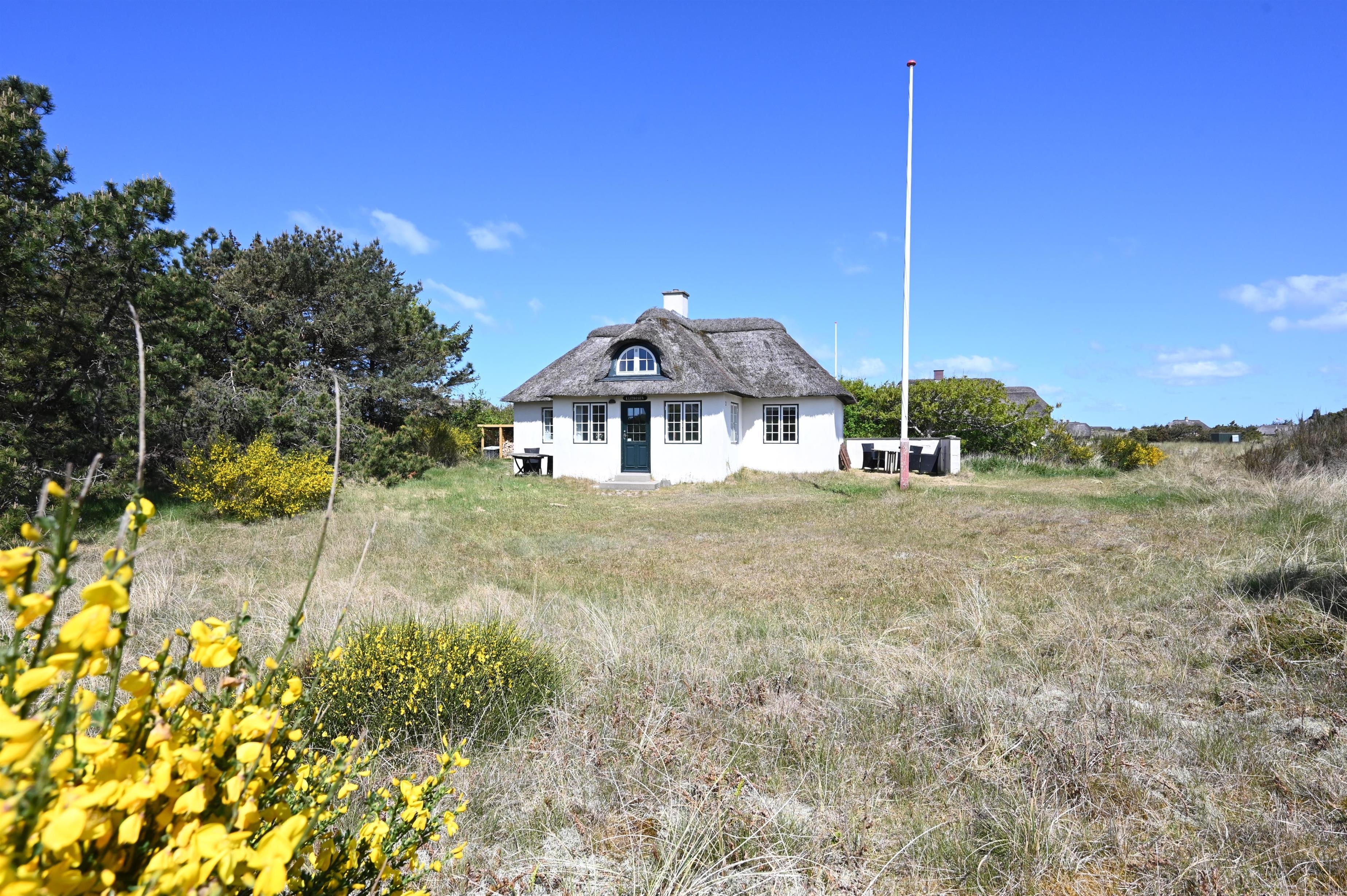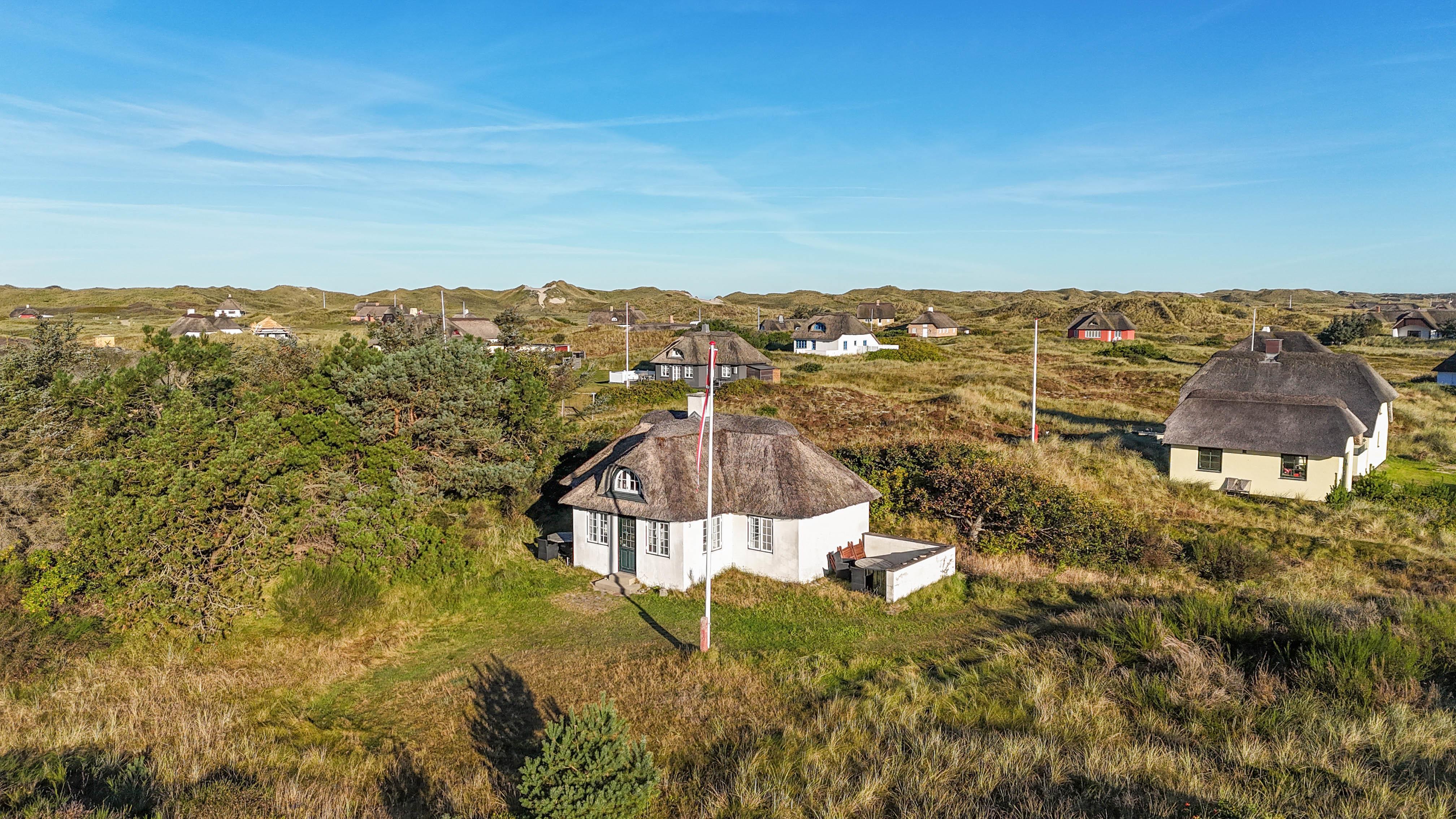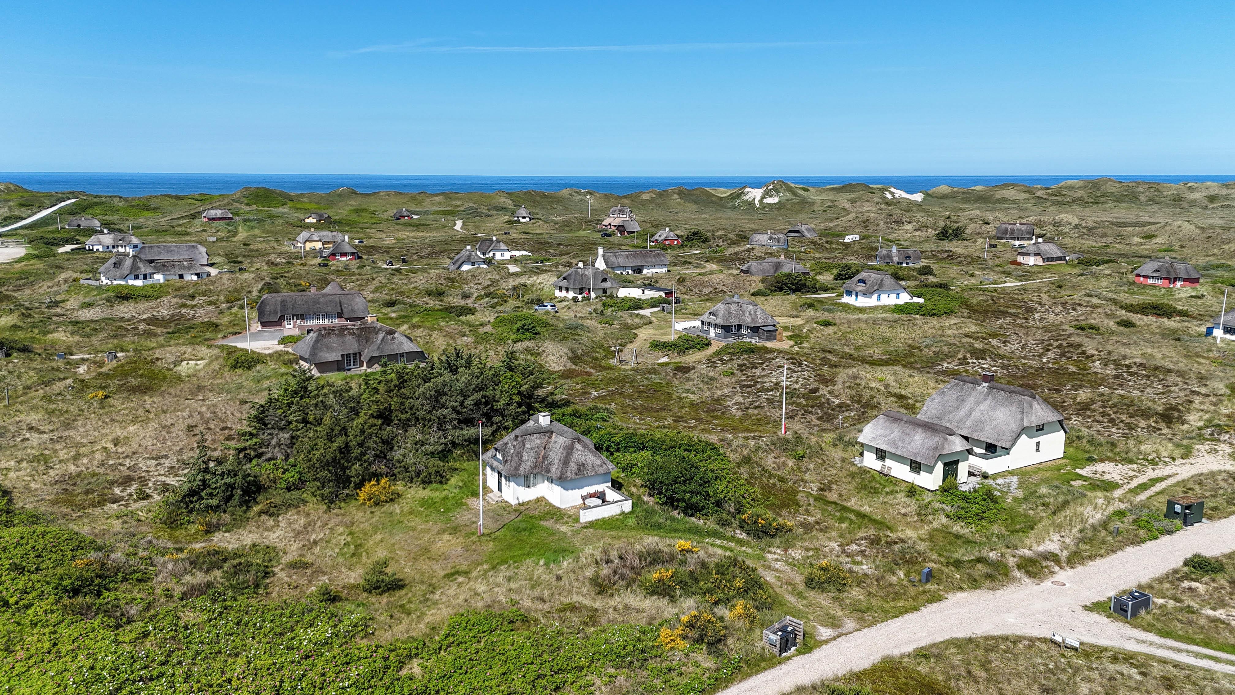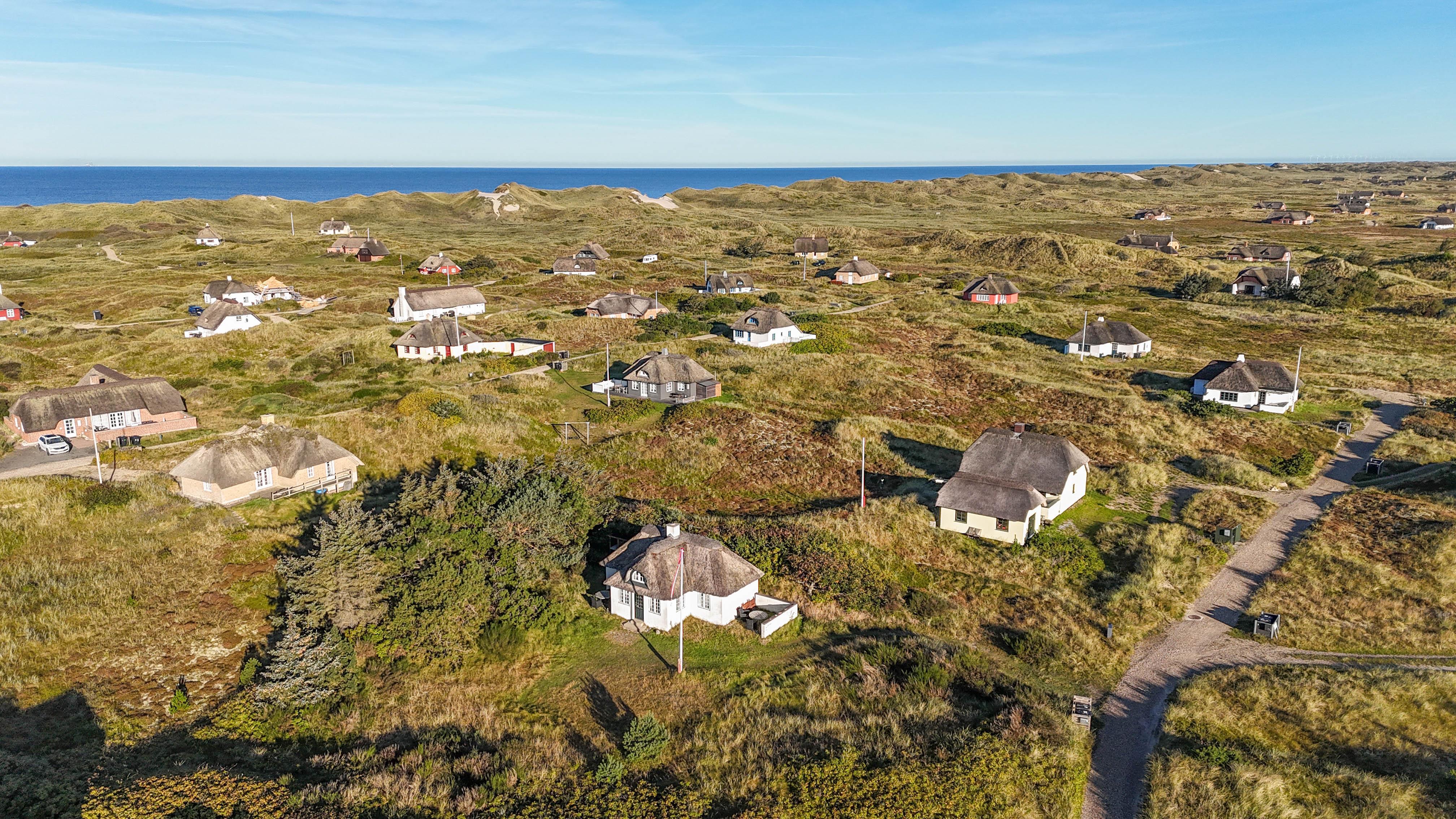 Beliggenheden er perfekt: midt i den smukke natur og kun fem minutters gang fra stranden og det brusende Vesterhav. Her kan I nyde lange gåture, solrige dage i klitterne og rolige aftener med havets lyd i baggrunden.