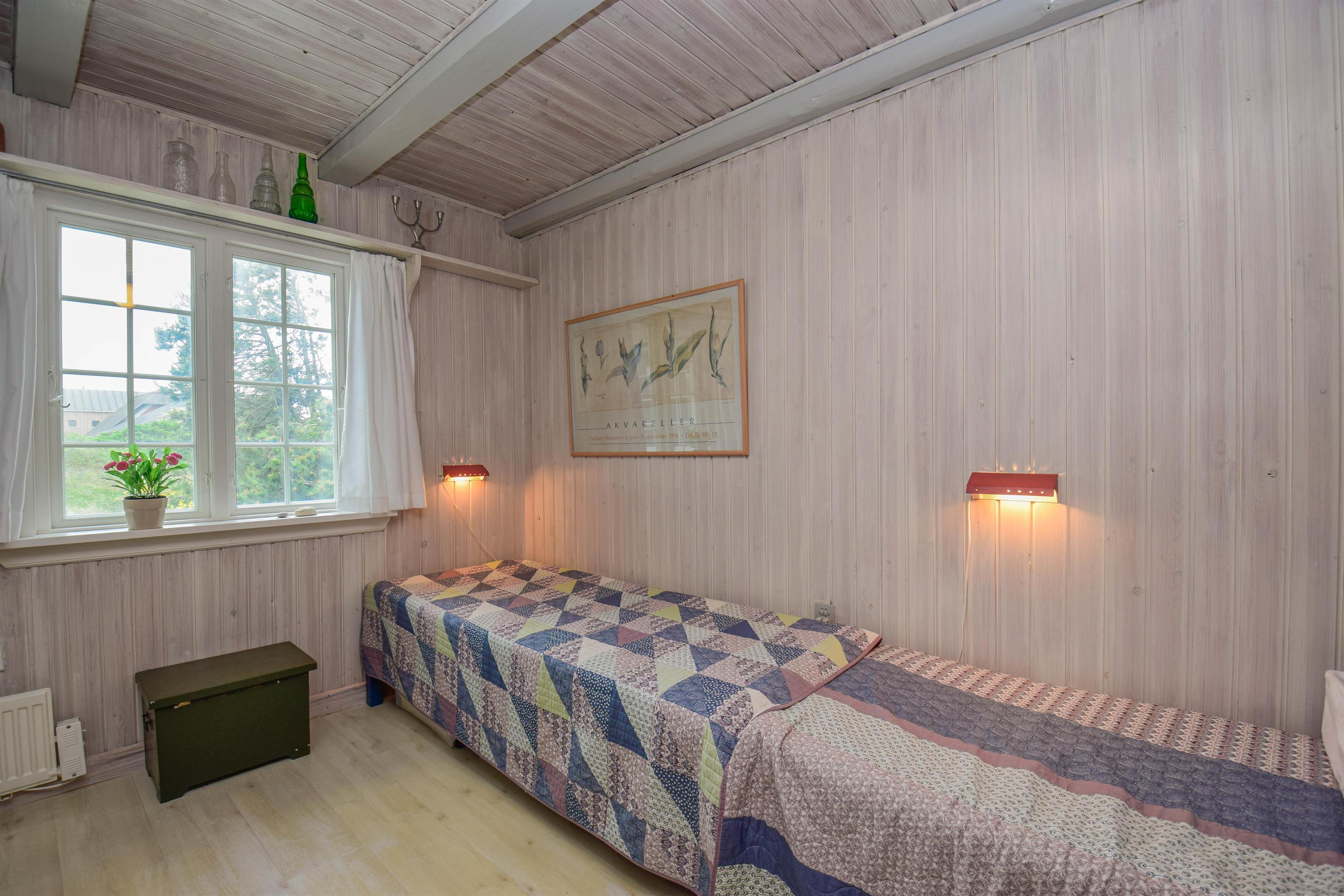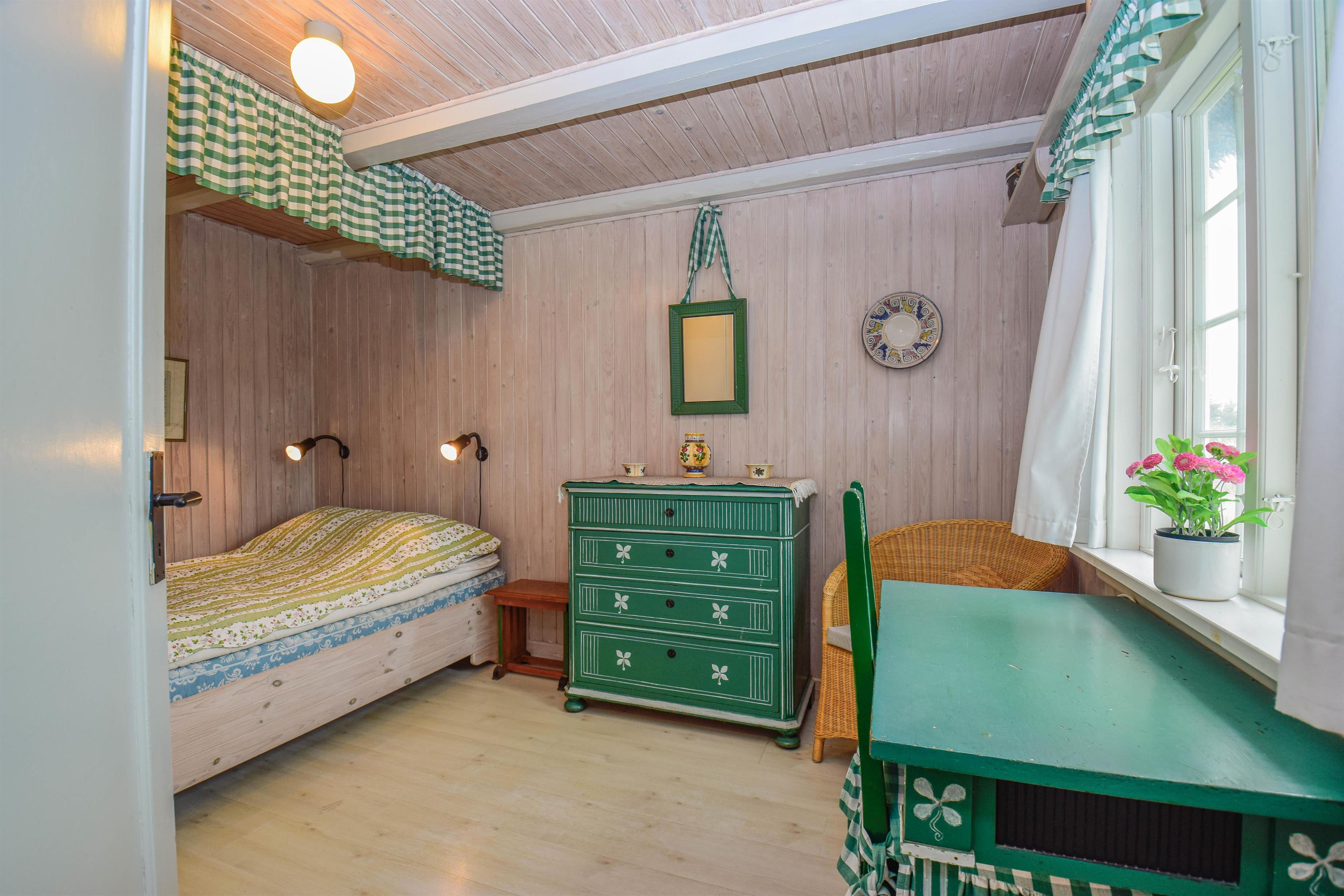 Der er to gode, hyggeligt indrettede værelser samt et flot renoveret badeværelse med rummelig bruseniche.