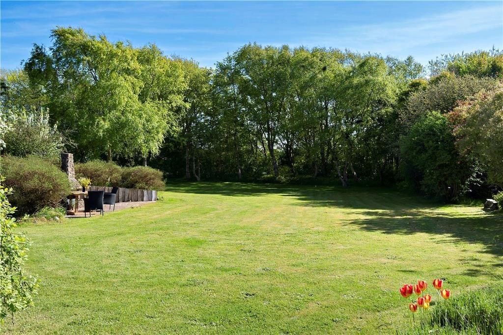 Mod syd finder I en fantastisk stor have, her er der rig mulighed for at I kan nyde solens varme stråler så tag bolden frem og gør klar til boldspil for hele familien, eller tag en omgang fangeleg på den smukke grund. Mod nord finder I den fantastiske udsigt udover ”Nørresø” så nyd udsigten, det rige fugleliv og muligheden for at se rådyr og andet vildt. Tag aftensmaden med udenfor og lav den på grillen, nyd den lækre duft af mad der stiger op og blander sig med den friske luft, imens I nyder et lækkert sommermåltid, kan I beundre den smukke himmel der, i takt med solen går ned, bliver et væld af smukke orangerøde nuancer.