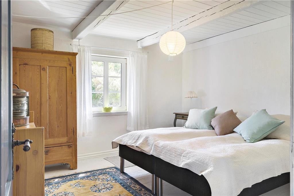 Smukke, charmerende og fantastiske farverige detaljer pryder dette smukke feriehus, her har I rig mulighed for at nyde hinandens selskab. Feriehuset ligger som halvdelen af et flot og naturskønt landsted, med rigtig bondehus-idyl. Nyd hinandens selskab med et godt spil kort omkring det charmerende spisebord, eller nyd en god film i fjernsynet imens grinene er mange og humøret er højt. Imens I laver et lækkert aftensmåltid så nyd den fantastiske udsigt udover ”Nørresø” se de fantastiske fugle- og dyreliv. Huset giver jer utallige muligheder for at nyde hinandens selskab, men det giver også tid til fordybelse og alenetid.