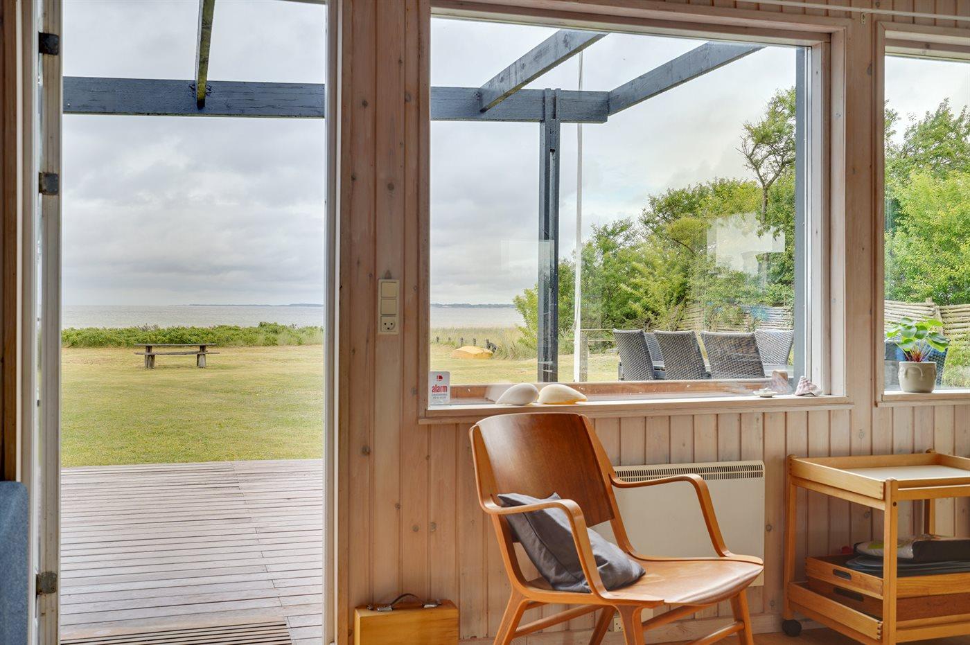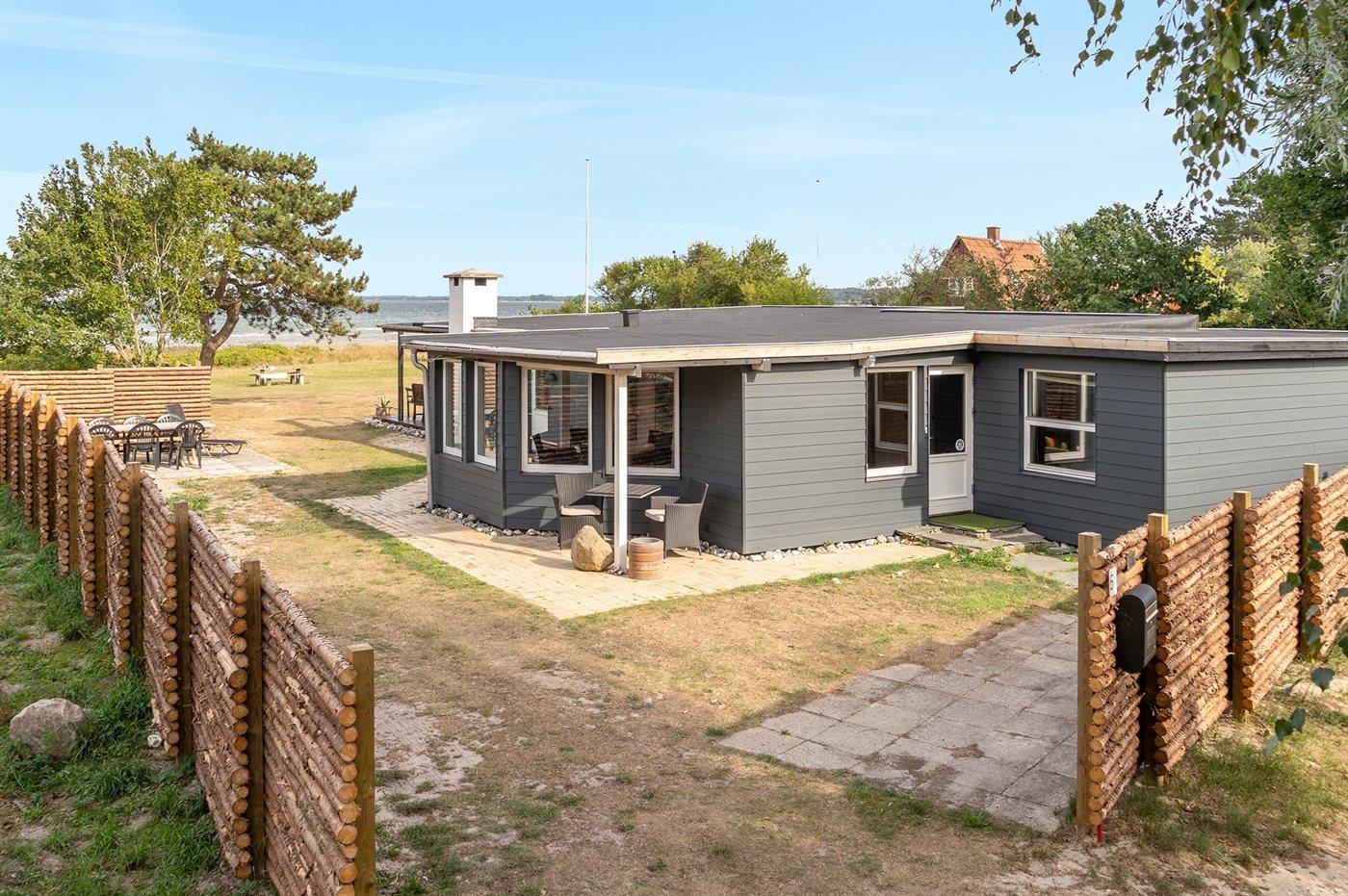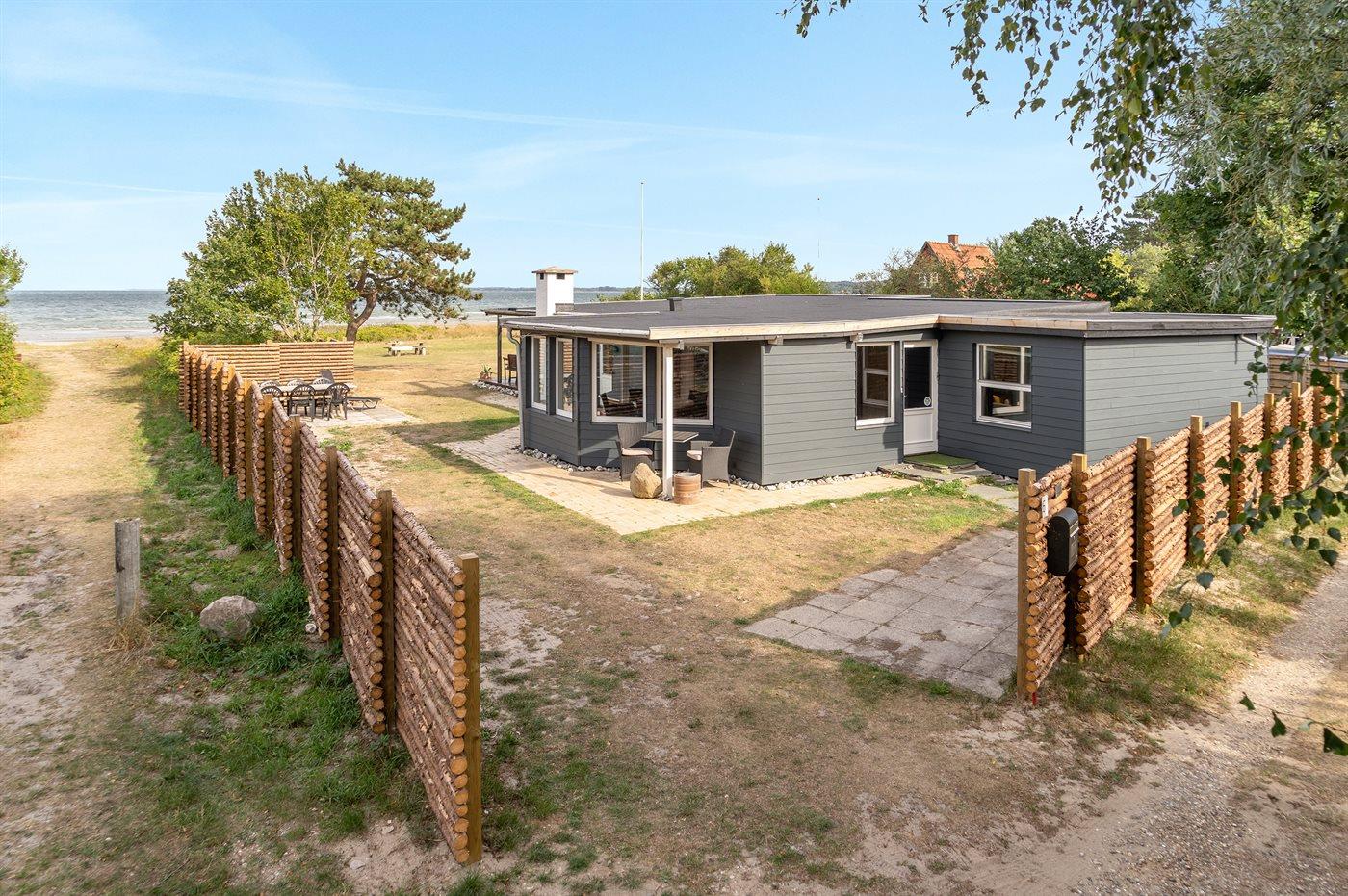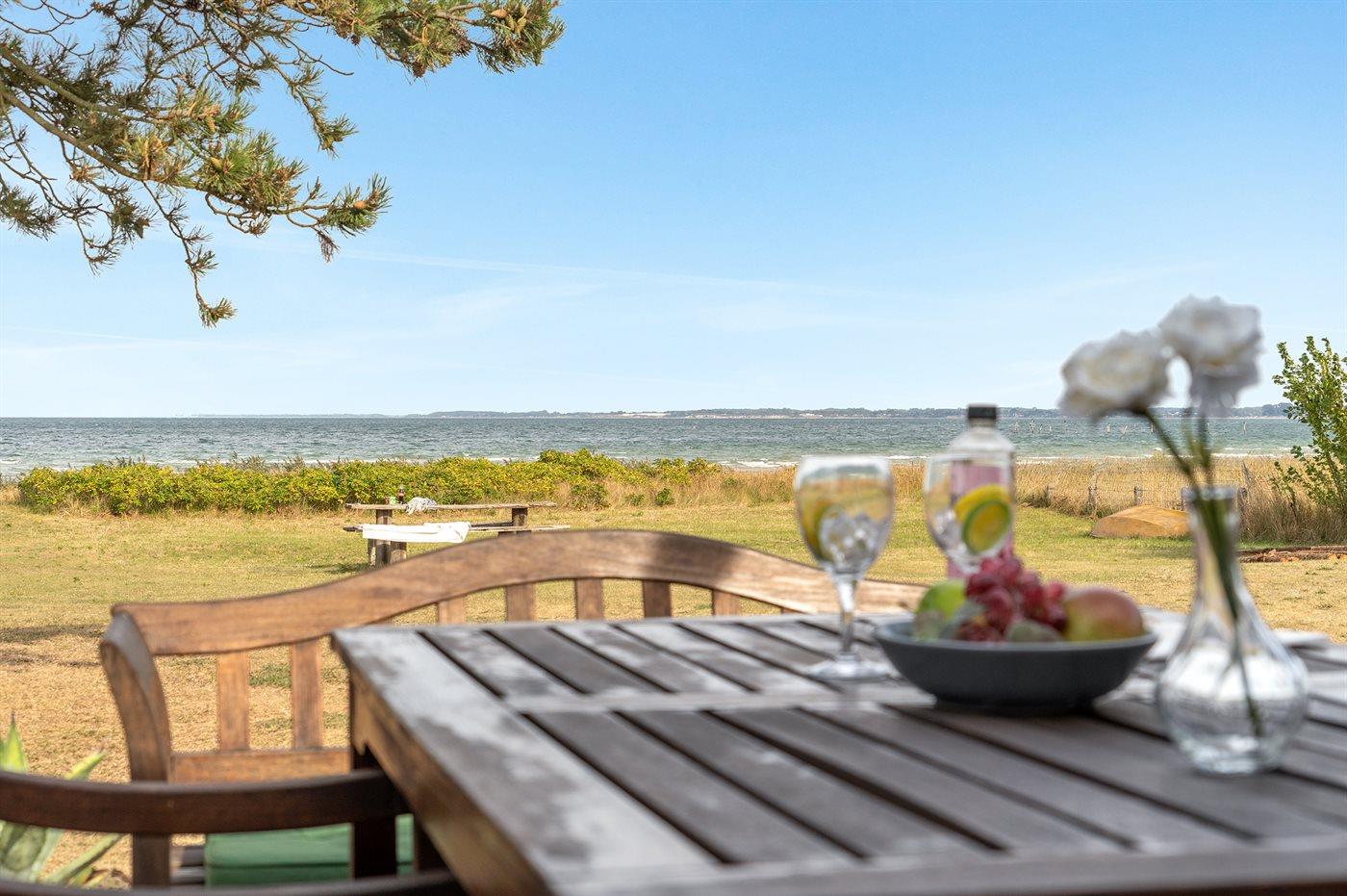 Charmerende sommerhus i 1. række ved Vejlby Fed med havudsigt, stor terrasse og kort afstand til badestrand.