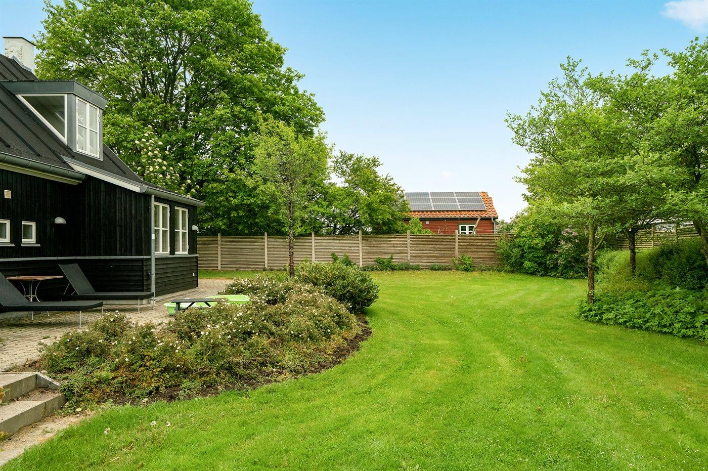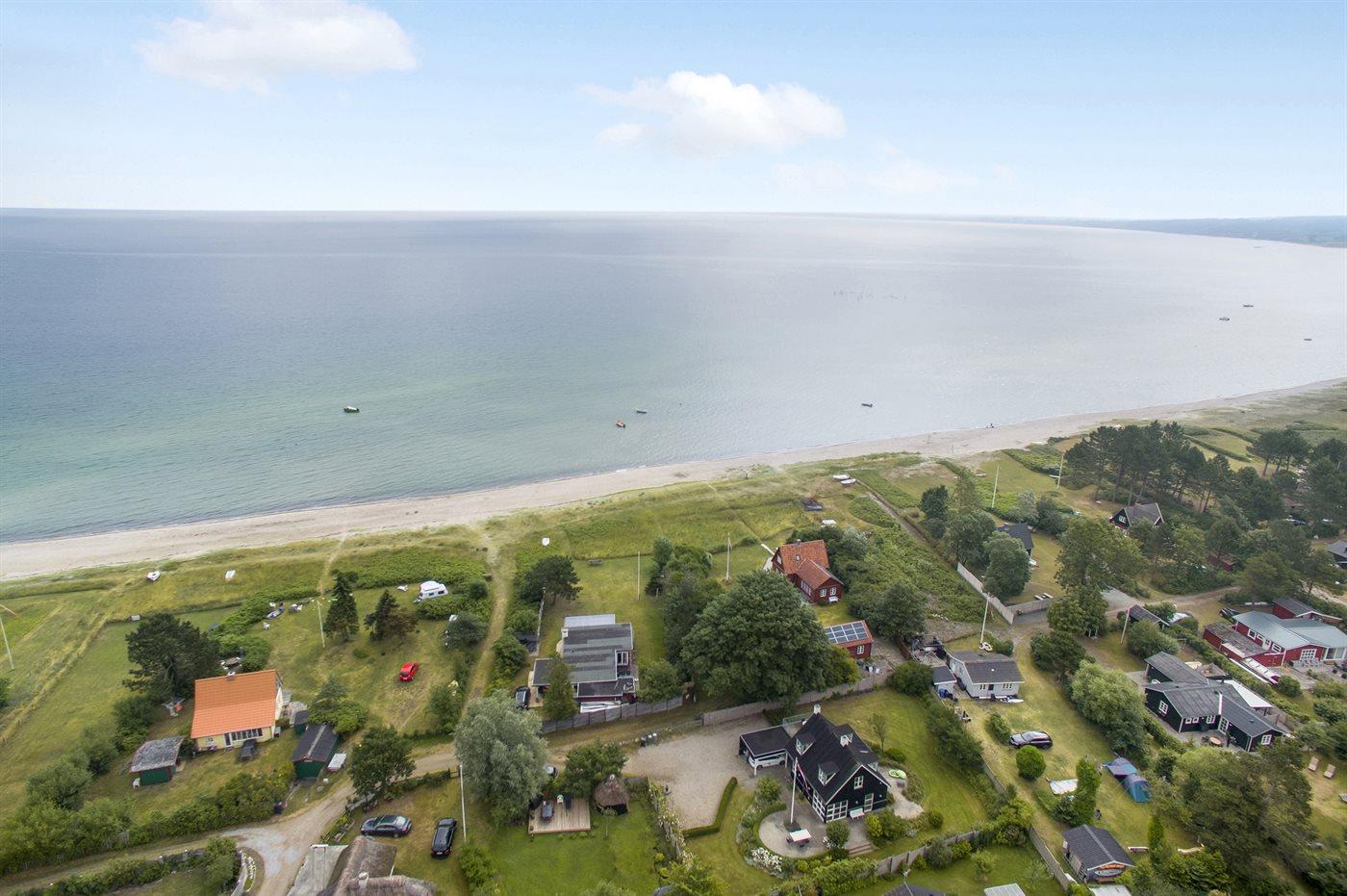 Ferieboligen er beliggende på en 1047 m² stor havegrund. Der er 75 m til havet. Nærmeste forretning er beliggende i en afstand af 500 m. Til ferieboligen hører 100 m² terrasseareal. Grill til rådighed. Der er carport til rådighed. Der er installeret stik til opladning af elbil (ladekabel skal medbringes). Type 2 stik. Med 11 kW ladeeffekt. Parkering ved ferieboligen.