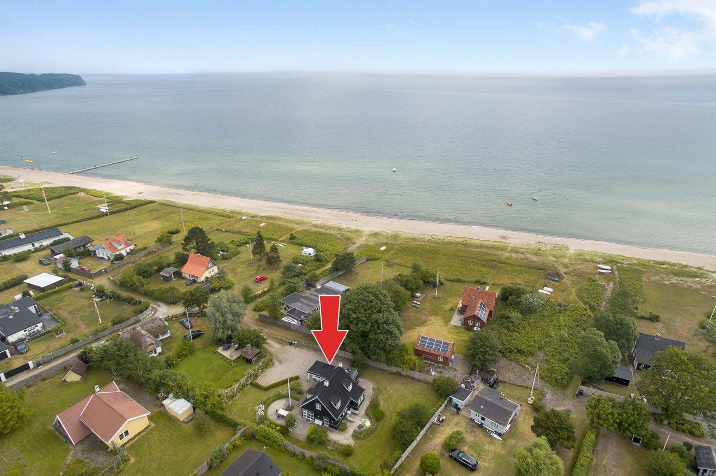 Fantastisk arkitekttegnet sommerhus beliggende lige ved vandet og dejlig sandstrand i sommerhusområdet Vejlby Fed. I stueetagen er gulvene belagte med opvarmede italienske klinker, og på 1. sal samt i soveværelserne i stueetagen er der smukke egetræsgulve. Fra opholdsstuen på 1. sal er der udgang til en skøn solterrasse med udsigt over vandet. Bemærk: i den store opholdsstue på 1. sal findes sovesofa, hvor 2 af sovepladserne befinder sig.