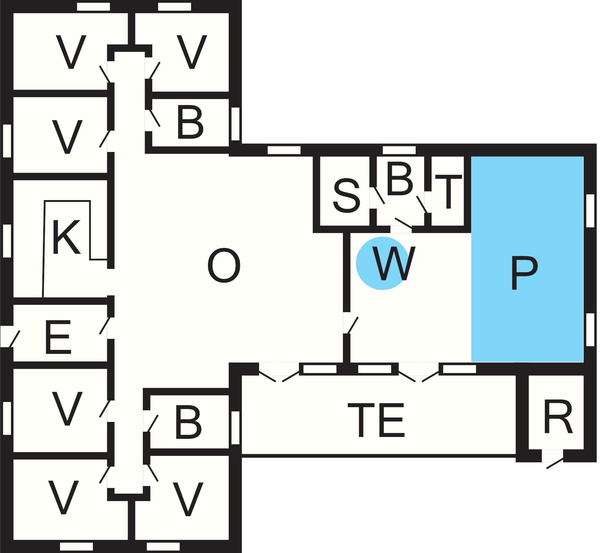 6 Soveværelser: (1DS)+(1DS)+(1DS)+(1DS)+(2S)+(2S), barneseng