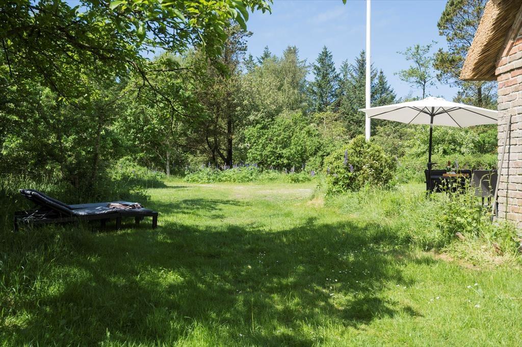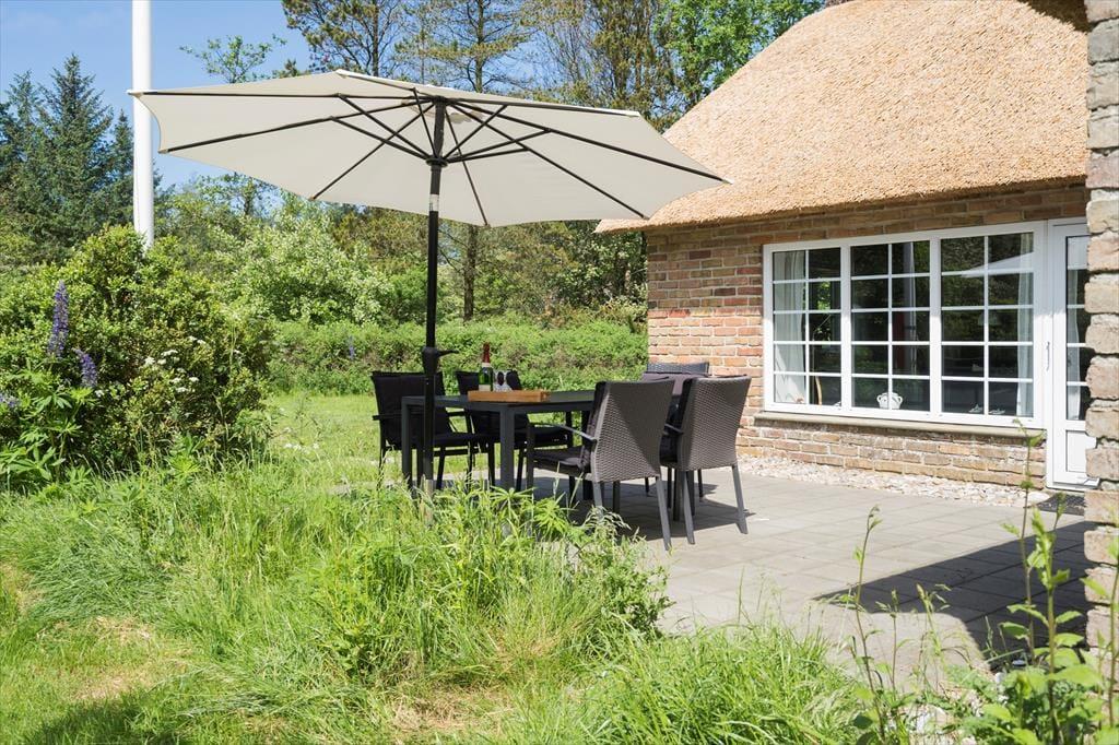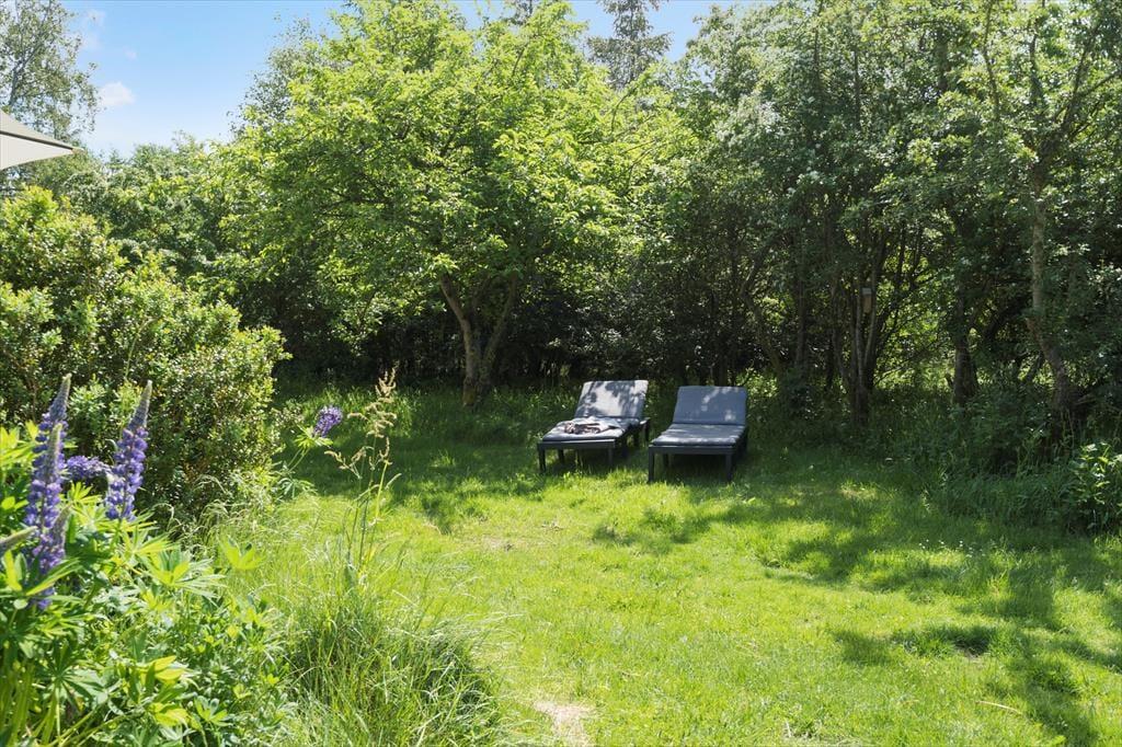 Huset ligger på en uforstyrret naturgrund, skærmet af buske og træer, så I får følelsen af at være helt alene – på den gode måde. Der er ingen trafik, ingen larm; kun fuglesang og det stille susen i græsset. Udenfor venter terrassen som et lille åndehul midt i den fredelige natur. Det er et oplagt sted at slå sig ned og nyde både stilheden og hinandens selskab. Når solen er på vej ned, og lyset bliver gyldent, kan I sidde her og mærke dagen falde til ro. Måske begynder I også dagen herude – med en kop kaffe, et tæppe over skuldrene og duggen, der langsomt fordamper, mens solen stille stiger op. Den friske luft og naturens nærvær gør det let at mærke, hvor godt det er at være på ferie. Herude er der plads til at være til stede og nyde nuet.