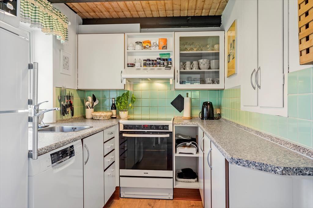Velkommen ind i et lyst og indbydende feriehus, hvor den åbne sammenhæng mellem stue, spisestue og køkken gør det nemt at være sammen – uanset om I laver mad, spiller spil eller bare slapper af. Her kan I sætte jer godt til rette i sofaen med en god bog eller samles rundt om spisebordet over et dejligt måltid med friske lokale råvarer mens snakken falder på dagens begivenheder. I får rig mulighed for at nyde hinandens selskab mens brændeovnen knitrer og spreder den helt rette feriestemning.