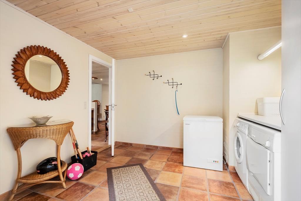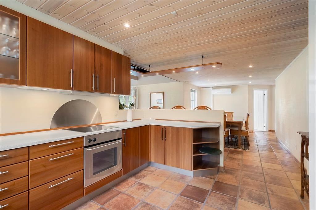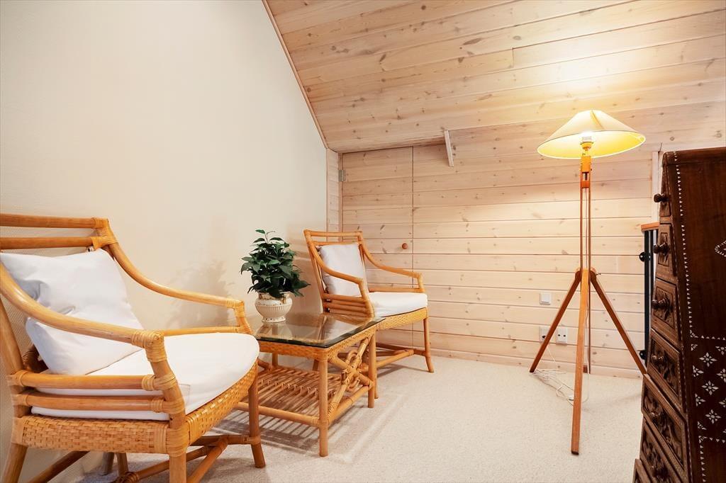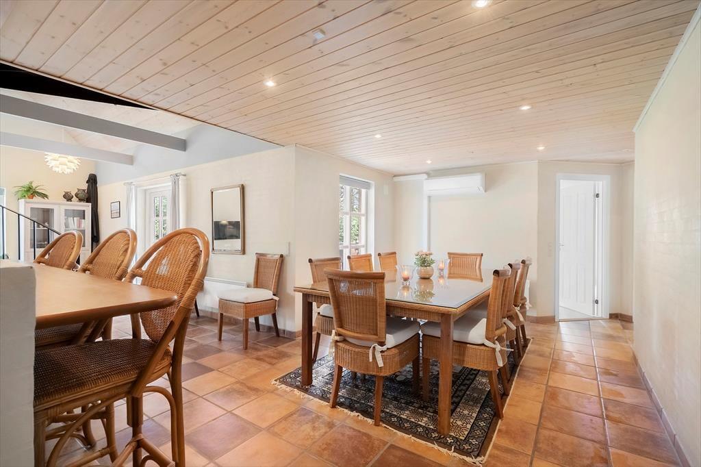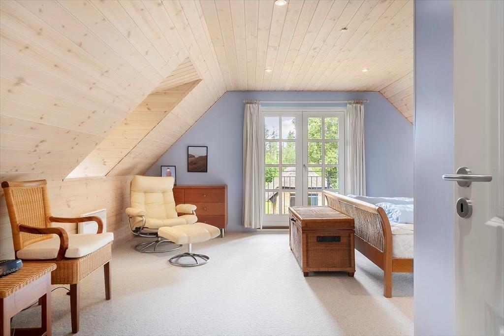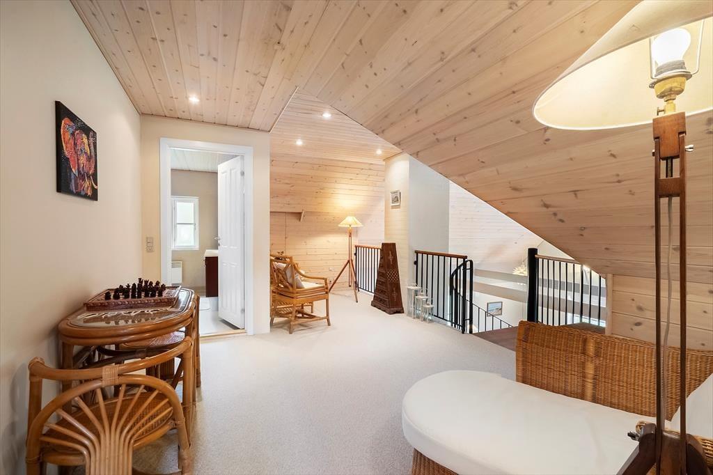 Velkommen til et dejligt hus, hvor I straks mærker, at her er plads til både samvær, fordybelse og de små stunder, der gør ferien helt særlig. Det store og lyse køkkenalrum fungerer som husets naturlige samlingspunkt, hvor I kan lave mad sammen, spille kort ved spisebordet eller hygge med en kop kaffe, mens nogen fortæller historier fra dagen. Husets mange hyggekroge inviterer jer til at sætte tempoet ned og nyde roen – måske med en bog, måske med et spil, måske bare med et par rolige minutter i stille eftertanke. To af værelserne har direkte udgang til terrasse eller altan, så I kan starte morgenen med frisk luft og fuglesang, helt for jer selv. Efter en dag fyldt med aktiviteter kan I afslutte aftenen i saunaen, hvor varmen gør kroppen behageligt tung og giver jer tid til bare at være nærværende sammen.