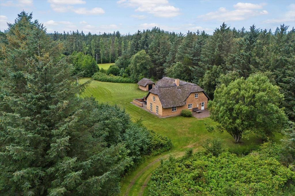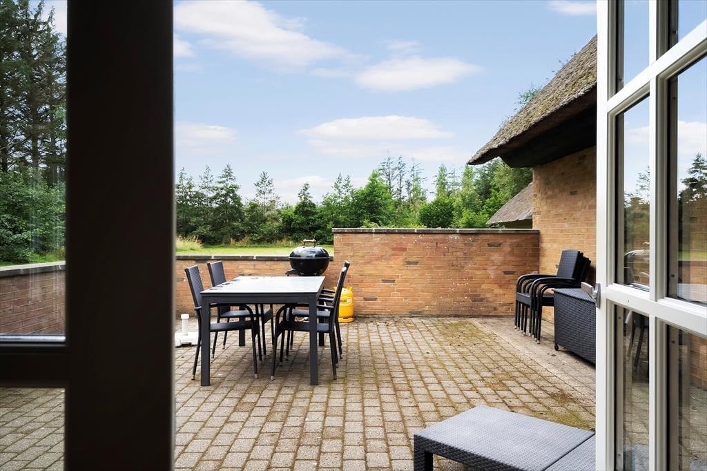 Udenfor venter en skøn grund, der indbyder til leg, afslapning og alt det, der gør ferielivet ekstra rart. På den delvist lukkede terrasse kan I slå jer ned og nyde udsigten til naturen omkring jer, mens I mærker solen eller føler aftenduggen sætte sig roligt. Terrassen giver jer rig mulighed for at spise ude i læ, uanset om det er morgenmad i det første lys eller en hyggelig middag, mens dagens oplevelser bliver delt rundt om bordet. Børnene kan nemt slippe bordet og løbe ud på grunden, hvor der er masser af plads til leg, fantasi og små eventyr. Samtidig kan I voksne blive siddende, færdiggøre måltidet i jeres eget tempo og nyde den trygge og rolige atmosfære, der ligger som et blødt tæppe omkring jer. Det er stedet, hvor I kan mærke naturen, høre fuglene og bare lade tiden gå langsomt for en stund.