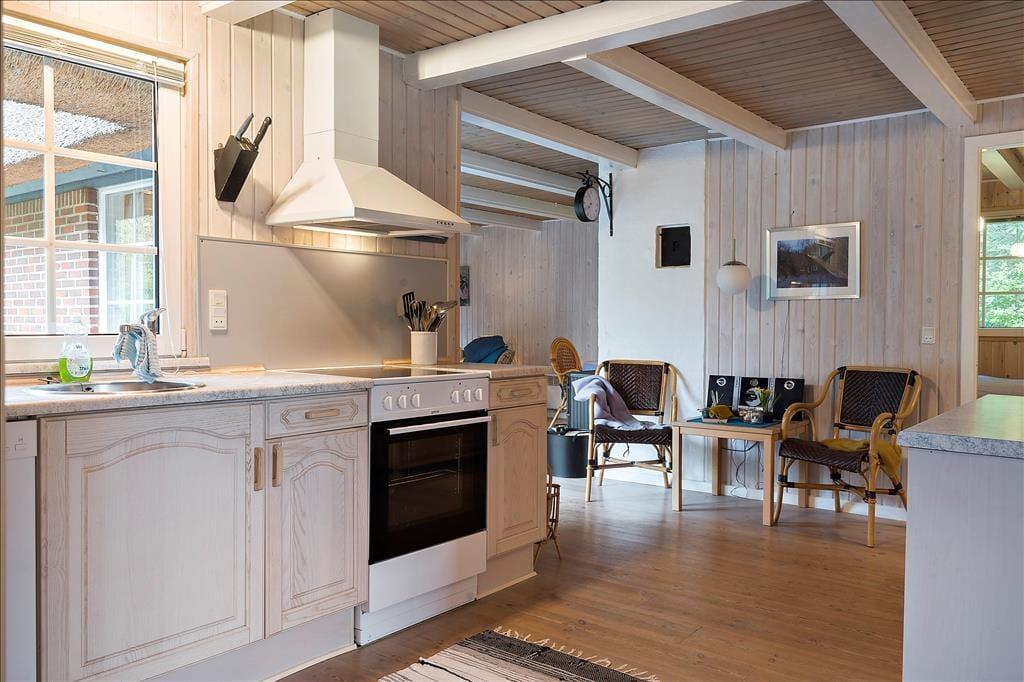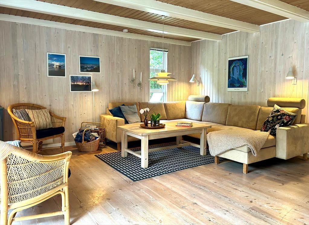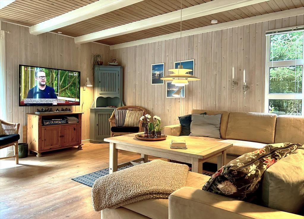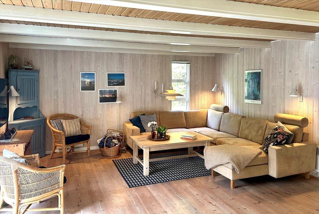 Når I træder over tærsklen til dette sommerhus, mærker I straks en atmosfære af varme, ro og hygge. Her er fokus ikke på tingene omkring jer, men på den følelse, der opstår, når I samles – den særlige ro, der breder sig, når brændeovnens knitrende varme følger jer gennem dagen, og når I giver jer tid til bare at være sammen. Det er et sted, hvor ferien får lov at synke ind, hvor I kan starte dagen langsomt, nyde stilheden og lade nærværet fylde rummet mellem jer. Efter en dag med frisk luft og nye indtryk kan I afslutte aftenen med en stund i den indendørs sauna, hvor varmen omslutter jer og giver plads til dybe åndedrag og ro i kroppen. Her handler alt om samvær, afslapning og den særlige feriestemning, der får tiden til at stå stille.
