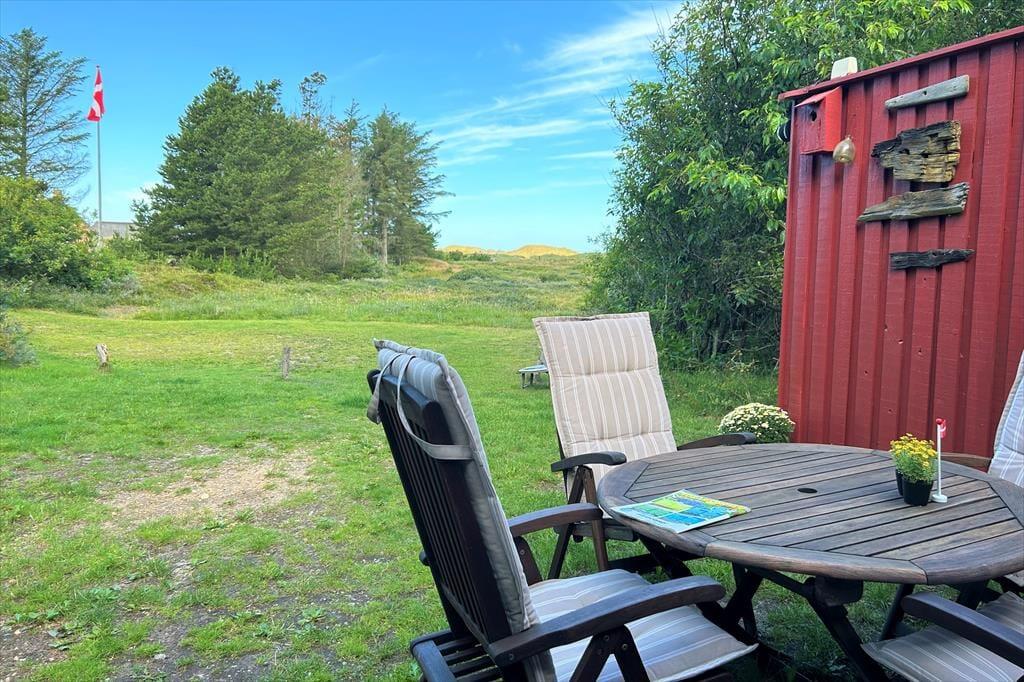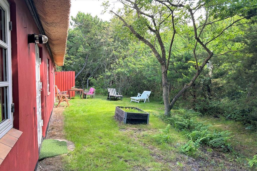 Omkring det charmerende hus er der en stor ugeneret naturgrund, ja den er faktisk på hele 16.000 m2, så der er rig mulighed for at hygge sig udenfor, hvor der er god plads til leg og boldspil, samt der er gynger til børnene og tørrestativ til fri afbenyttelse. Fra grunden har I en smuk klitudsigt. På grunden er der gode læ forhold som gør det muligt at være ude på trods af en lille blæst ind i mellem.