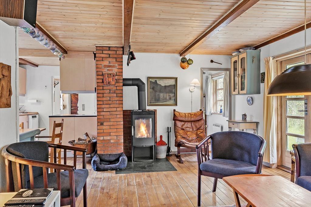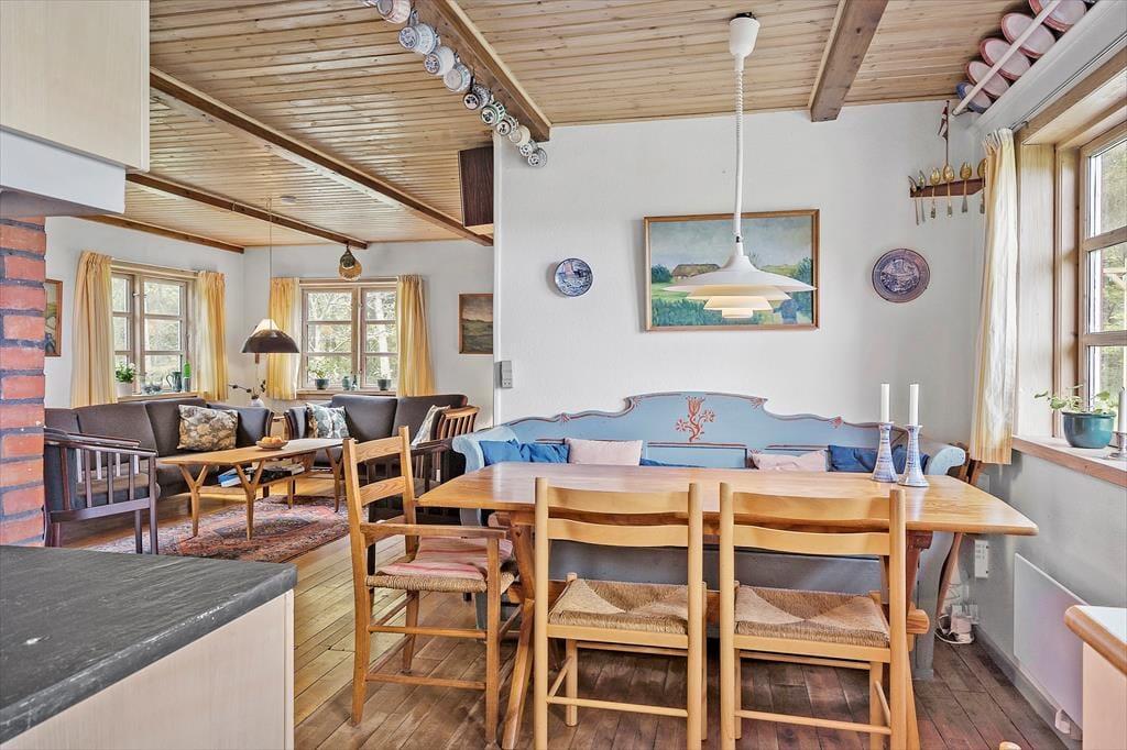 Nyd en hyggelig ferie i dette sommerhus der med sin landlige charme kan få en hver til at føle sig hjemme. Sæt jer omkring sofabordet i den hyggelige stue og tag et spil kort mens I hører brændeovnen knitre, har nogle lyst til at lave mad kan dette gøres i det veludstyrede køkken der er i åben forbindelse med stuen, så her kan I være sammen selvom I laver forskellige ting. Spiseafdelingen har en hyggelig bænk der gør det oplagt at hygge sig ved spisebordet imens der bliver lavet mad, og glem ikke jeres pelsklædte venner som er mere end velkomne i dette skønne sommerhus.
