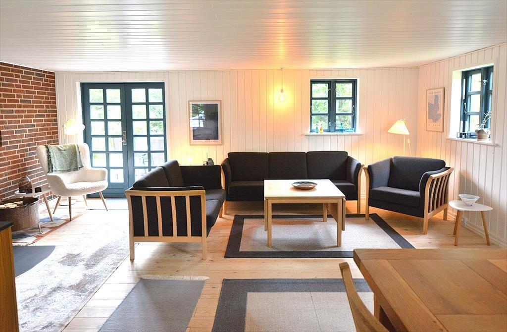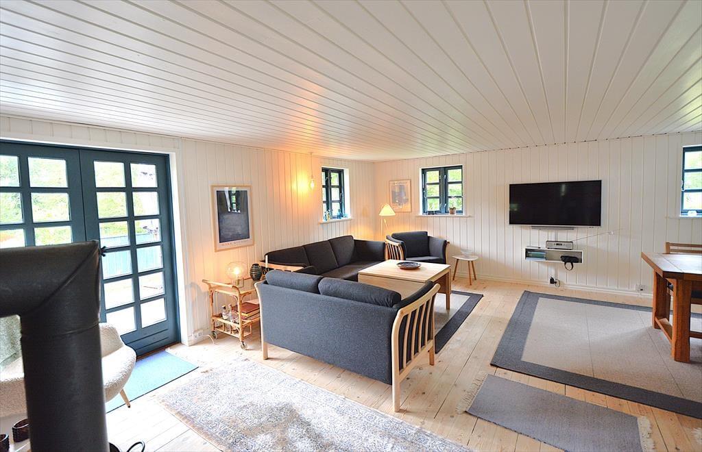 Blå detaljer pryder huset både indvendigt og udvendigt, de blå detaljer vil guide jer gennem huset og er med til at skabe en rød tråd. Det nyrenoverede køkken er ideelt til fællesmadlavning, og med sin gode åbne placering i huset har I rig mulighed for at være sammen alle sammen selvom I laver hvert jeres, køkkenet ligger nemlig i åben forbindelse med både stue og spisestue, så her kan ungerne sidde i sofaen og spille ludo imens de voksne laver mad. Nyd en hyggelig afslappende aften foran brændeovnen, mens varmen langsomt varmer rummet op og brændeovnen knitrer og skaber den perfekte feriestemning.