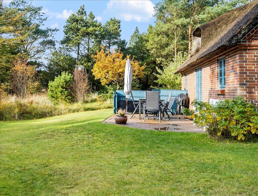 Sommerhuset er beliggende i det naturskønne Vester Husby solidt placeret midt i et grønt område med træer, budskader og skovstier. Huset ligger uforstyrret bag træerne og her kan I nyde jeres ferie i ro og fred. Blot 1000 meter fra huset ligger det smukke og, til tider, barske Vesterhav, her kan I nyde den friske havluft og det smukke landskab. Ikke langt fra huset ligger Husby Klitplantage, som byder på en masse cykel- og vandreruter, badesø og hundeskov. Området er utroligt fredeligt og emmer af afslapning og god natur.