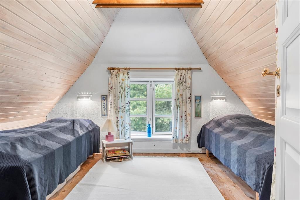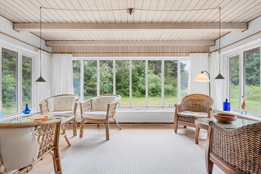 Tag hele familien under armen, ja selv bedsteforældrene er der plads til, her træder I ind i et hus med en dejlig rummelig atmosfære, her er plads til alle store som små. Lav et lækkert måltid i det lyse køkken, og nyd det sammen hele familien rundt om spisebordet, inden I sætter jer godt til rette i de dejlige sivmøbler, og med de mange vinduer, har I god mulighed for at nyde solen der langsomt går ned og rummet der skifter farve i takt med solen. Trænger I til en afslappende aften, så smid jer i de behagelige sofaer og tænd op i brændeovnen og nyd den hyggelige knitren og afslappende varme der langsomt overtager rummet.