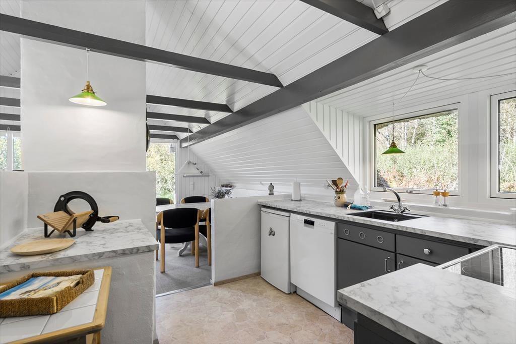 For enden af en fredelig stikvej i Vester Husby ligger dette charmerende stråtækte sommerhus – et sted, hvor roen er total, og feriestemningen indfinder sig fra første øjeblik. Allerede når I træder ind, bliver I mødt af en varm og indbydende atmosfære. I stuen kan I synke ned i en blød og behagelig sofa, mens flammerne fra brændeovnen knitrer og spreder varme. Her er det let at give sig tid – til en god kop kaffe, et spil kort eller bare at lade blikket hvile på gløderne. Huset emmer af personlighed og charme, og den hyggelige hems giver både ekstra plads og en sjov lille hule, som børnene vil elske at indtage.