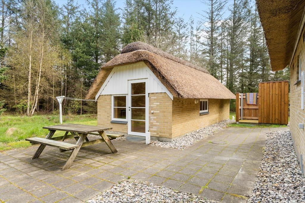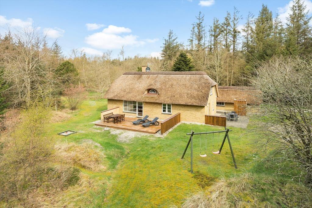 Nyd den friske luft der hersker over den store, kuperede og ugeneret naturgrund, her har I gode muligheder for at nyde en afslappende dag udendørs. I haven er der særligt tænkt på familiens mindste, for med både gynge, sandkasse og små fodboldmål er mulighederne mange, her kan de boltre sig i timevis. Imens ungerne leger, kan I sætte jer på den østvendte terrasse og nyd solens stråler, tag aftensmaden med udenfor og lav den på grillen og nyd den lækre duft der spreder sig i luften. På grunden finder I udendørsbruseren som både har koldt og varmt vand, den er særligt god før eller efter I har været i saunaen eller på en varm sommerdag. (Udendørsbruseren kan bruges i perioden 1. maj – 31. oktober. Vinterlukket)